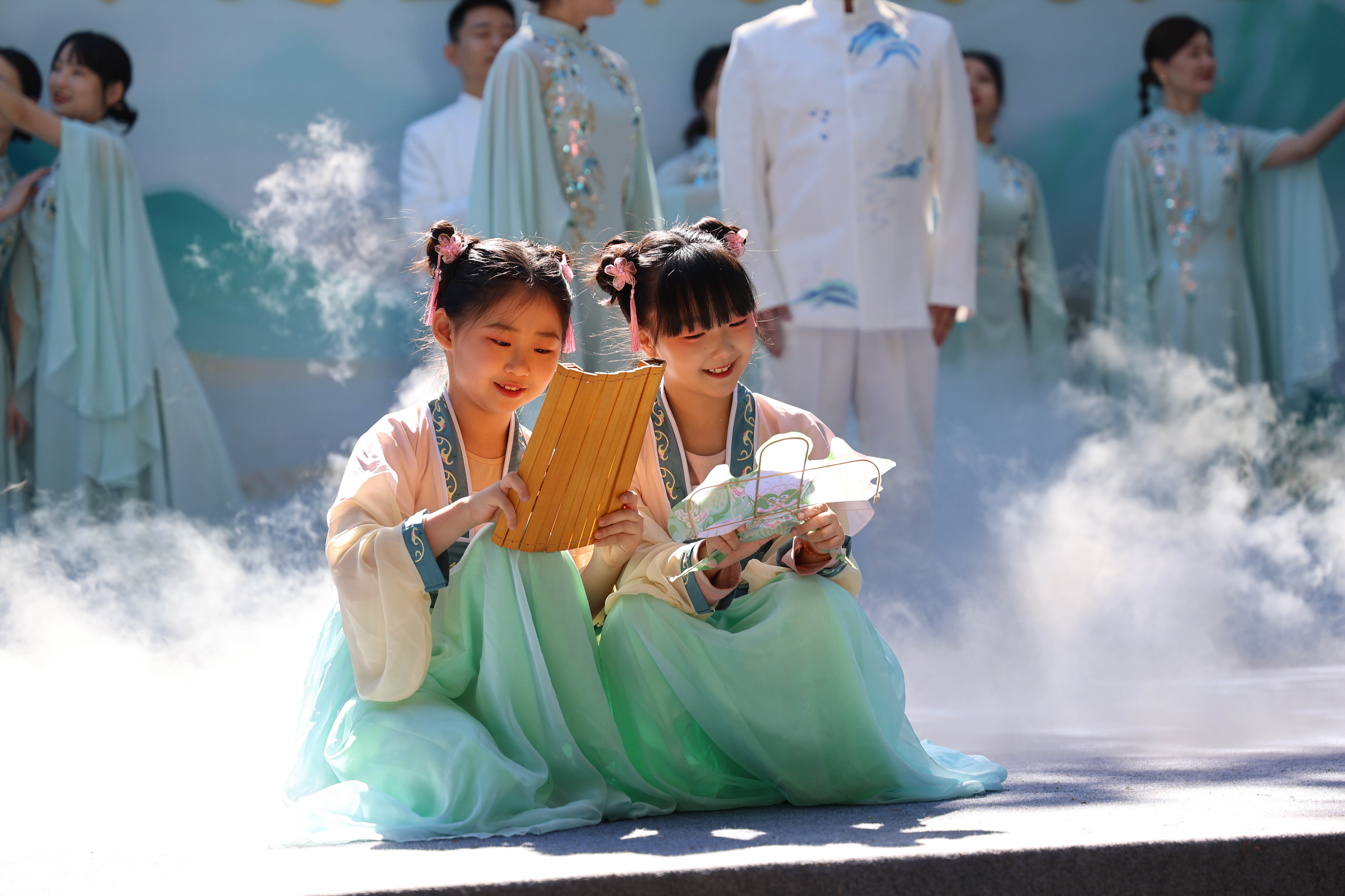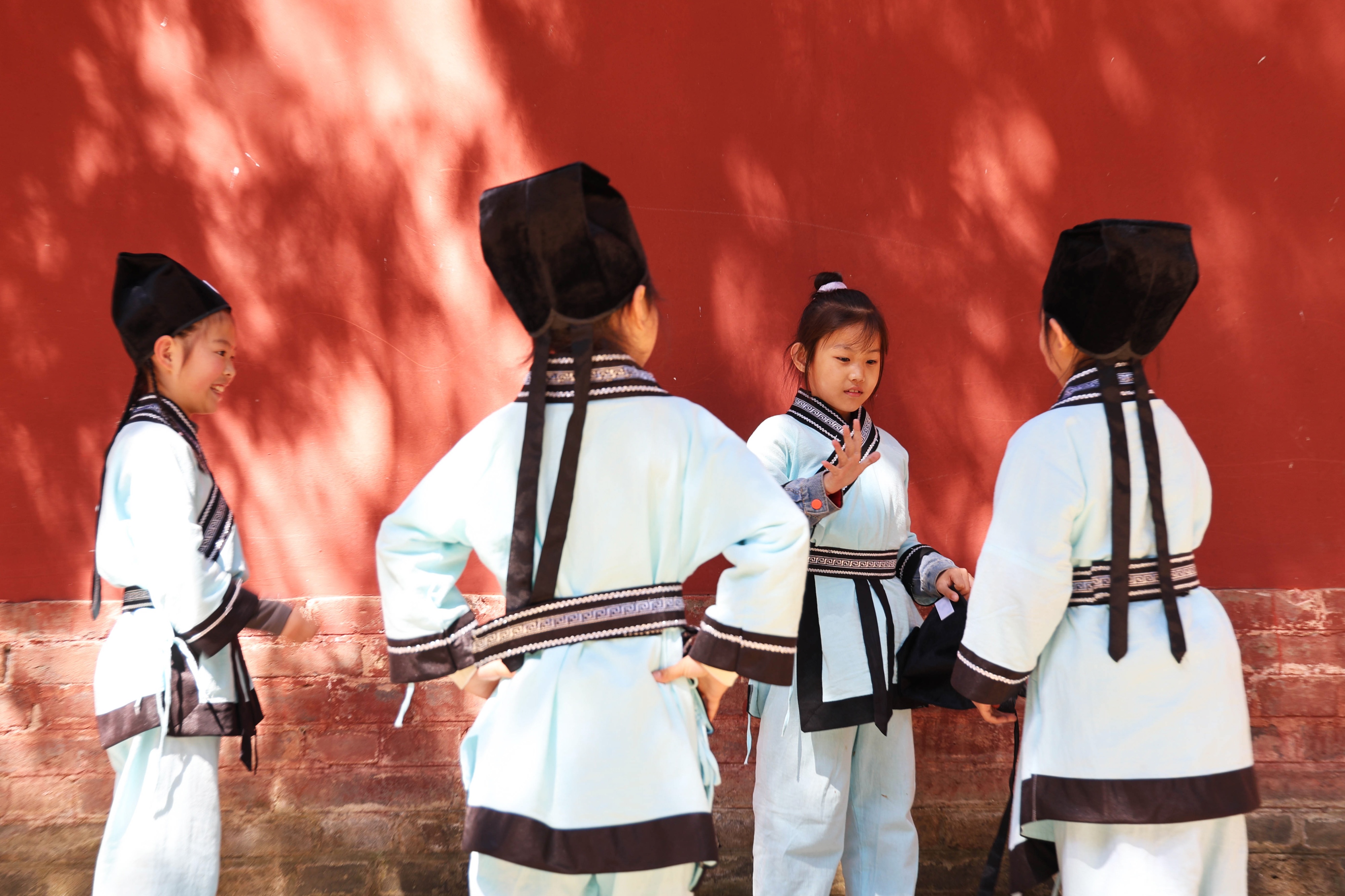 文脉传承,重在赓续,更在新一代的接棒。上午10时30分,夫子洞广场上童声琅琅,学童身着汉服,在师长引领下完成启蒙开笔礼仪式。朱砂轻点额头寓意启智明心,稚嫩小手书写“人”字传递立德之本,铿锵鼓声振聋发聩昭明求学之志。当孩子稚嫩的小手在宣纸上写下端端正正的“人”字,儒家“立德为本”的教育理念便完成了最具仪式感的代际传递。这种“沉浸式”的传统文化体验,远胜于书本上的空洞说教,它让仁义礼智信从抽象的符号变成了可感可知的生命实践。让年轻一代在体验中爱上传统、在浸润中传承文脉,正是传统文化生生不息的关键所在。