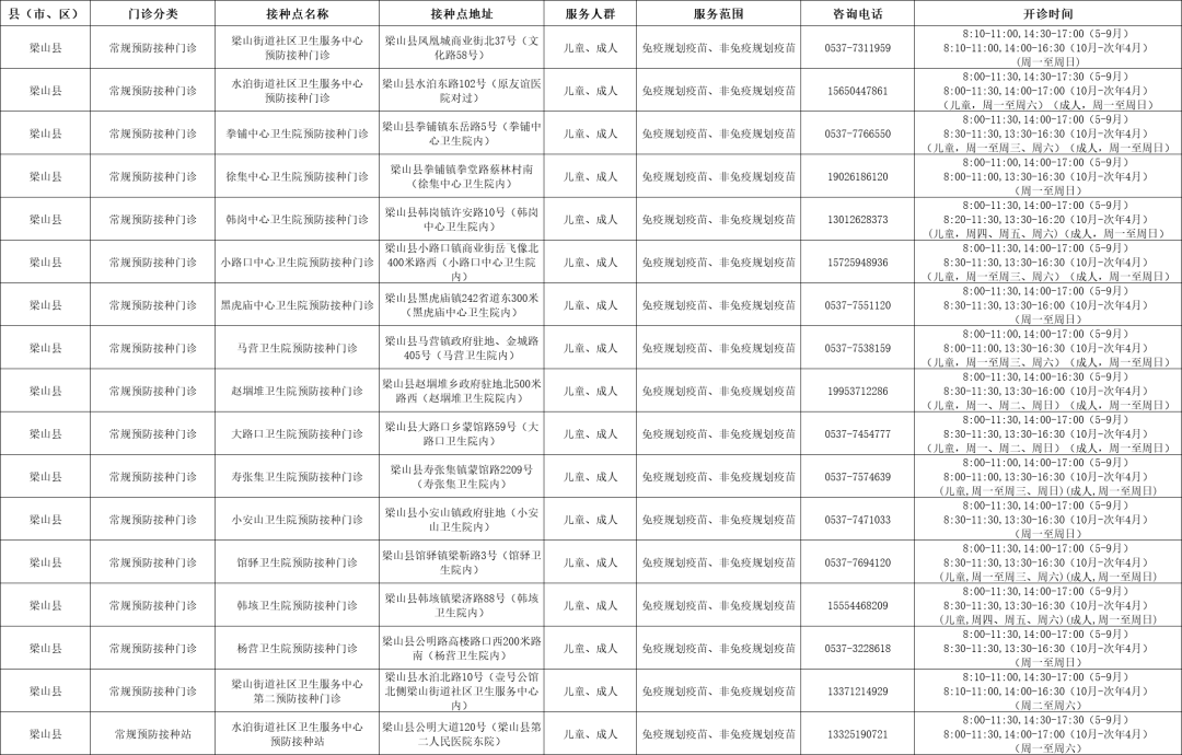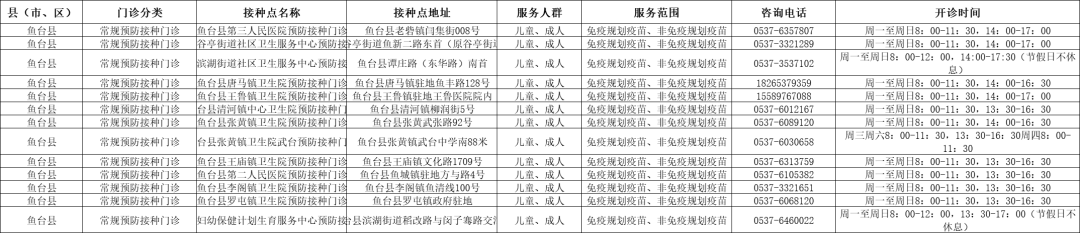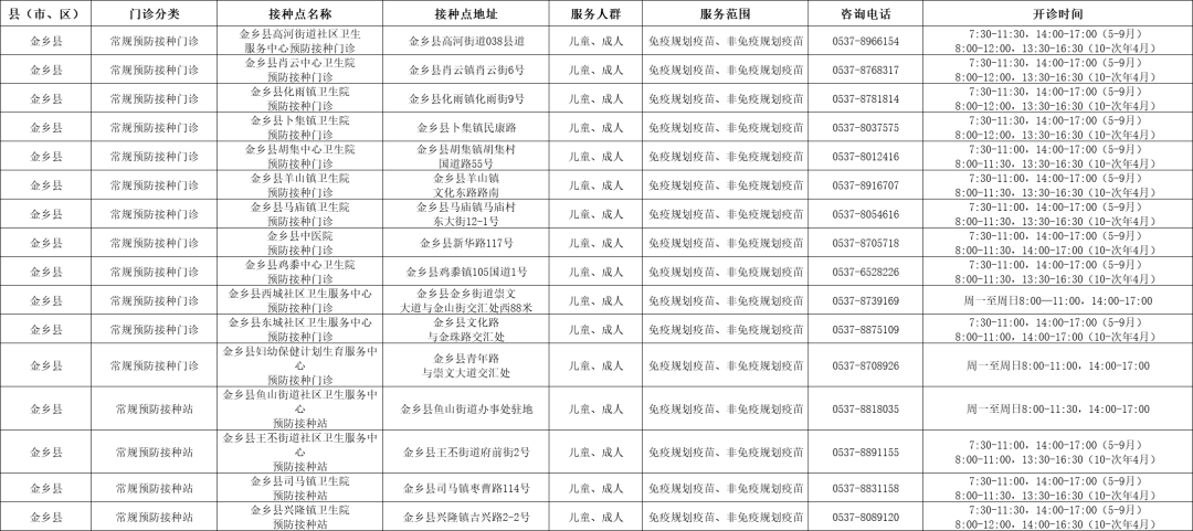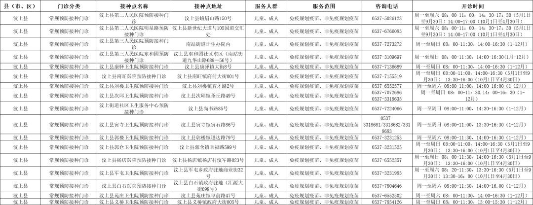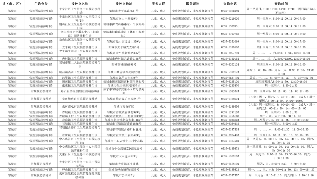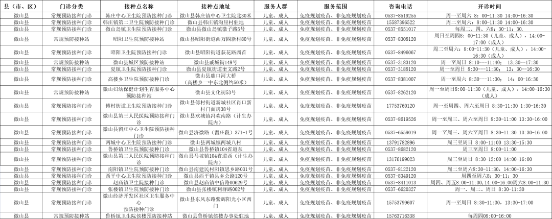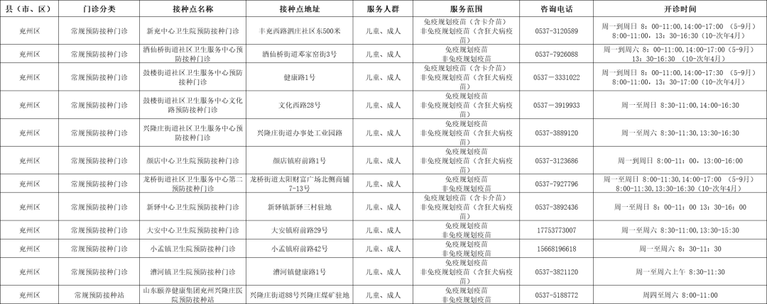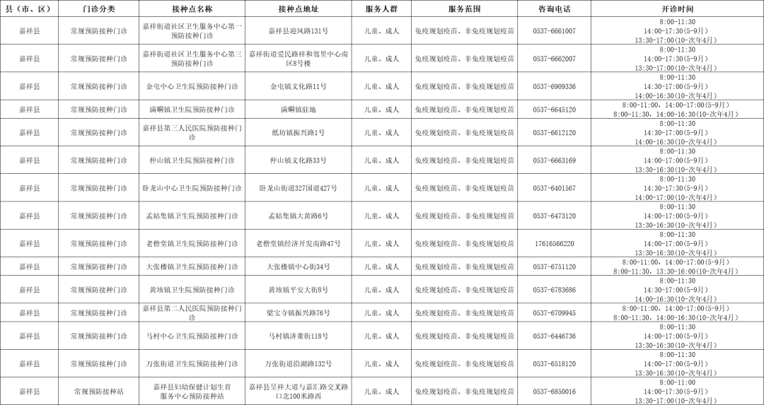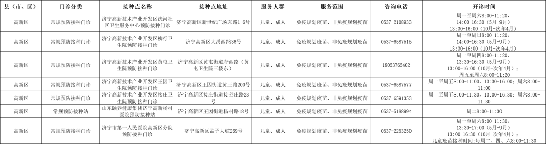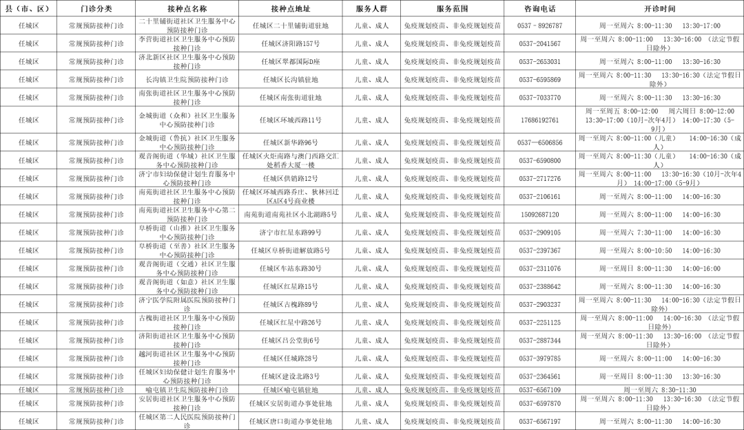 济宁市HPV疫苗预防接种门诊一览表来了!