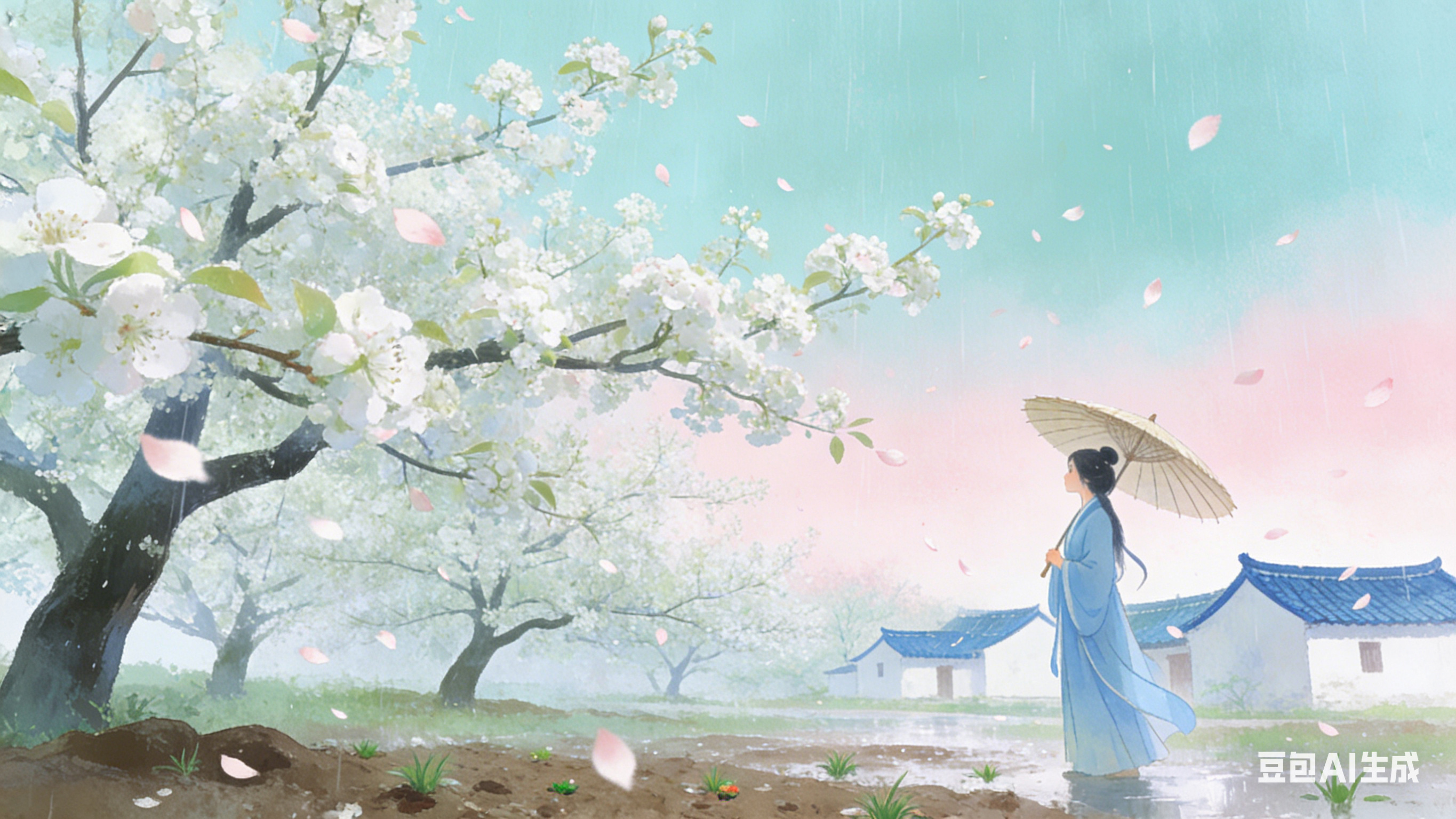 首句点明时令,“梨花风”是清明时节特有的风,轻柔而带寒意,吹得梨花纷纷飘落,春天的氛围感一下拉满。