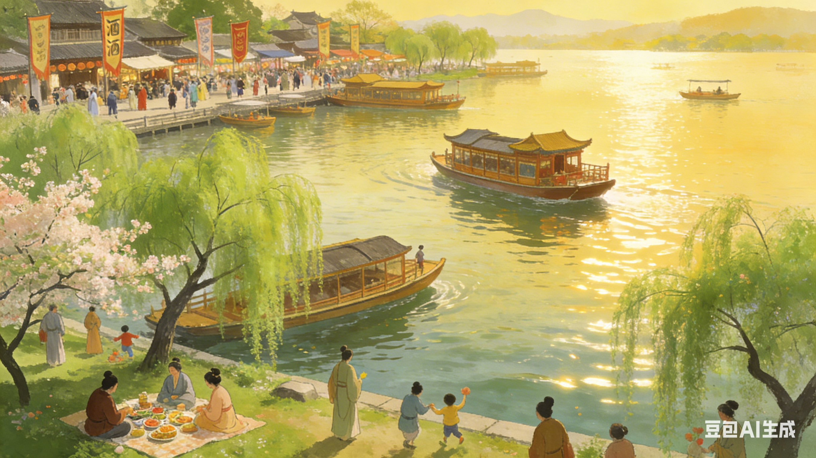 清明上巳西湖好,满目繁华。