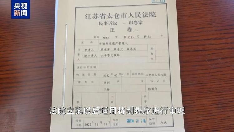 江苏省太仓市民政局副局长顾群丰:因为遗产管理人是个全新的法律身份,具体干什么,怎么干,法律也只有原则性规定。我们困惑就在于,这个流程到底怎么启动,怎么才算尽到了我们民政妥善管理的职责。当时就立即组织了骨干,反复研究民法典条例、条文,向上级民政部门和兄弟单位进行请教,跟法院不动产登记中心进行频繁沟通,可以说是摸着石头过河。