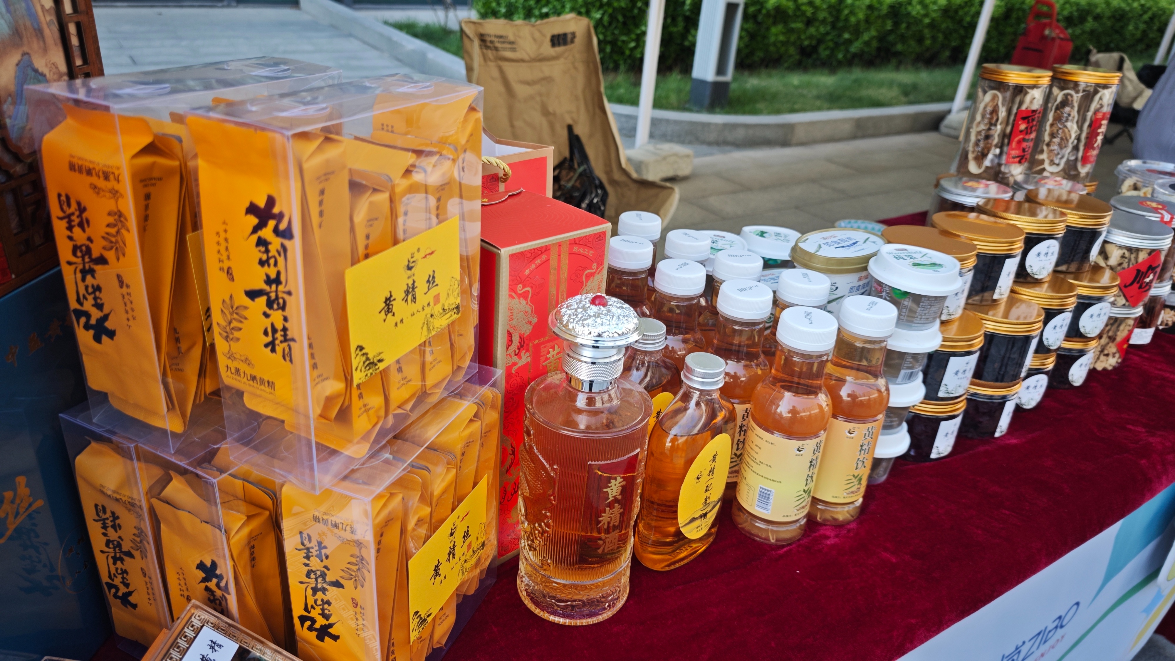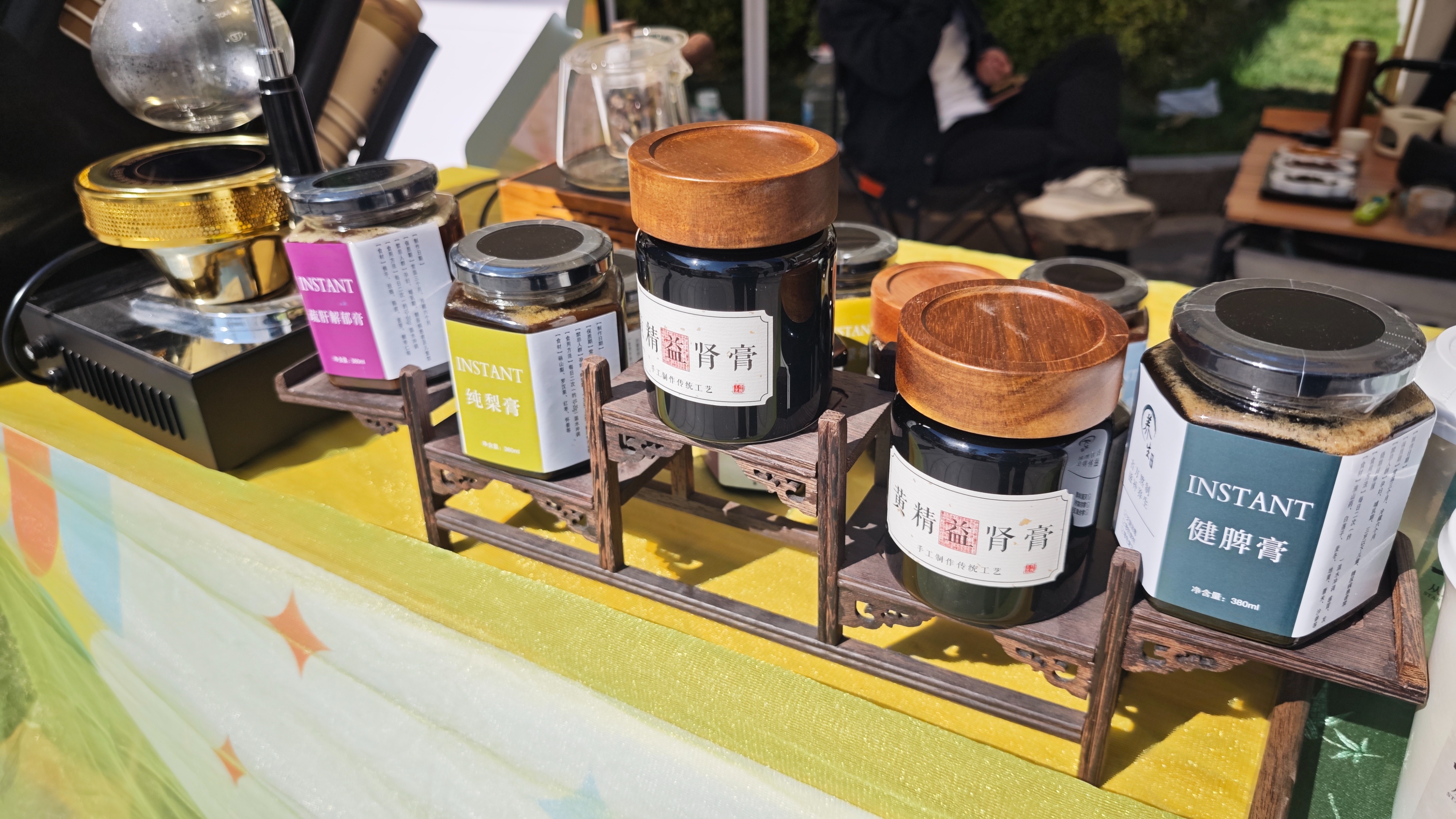 值得一提的是,市集还架起了跨地域的健康桥梁。重庆市御山黄食品带来的九蒸九制黄精系列产品备受关注,黄精丝茶、黄精酒、黄精糕点等既契合清明疏肝祛湿的养生需求,其古法炮制工艺本身也是中医药非遗的重要组成。“我们不仅是来推广产品,更是传递‘轻养生活’理念,践行消费帮扶。”工作人员介绍,产品原料来自淄博对口帮扶的重庆石柱县,希望通过市集让更多人了解北纬三十度多花黄精的价值,为乡村振兴贡献力量。