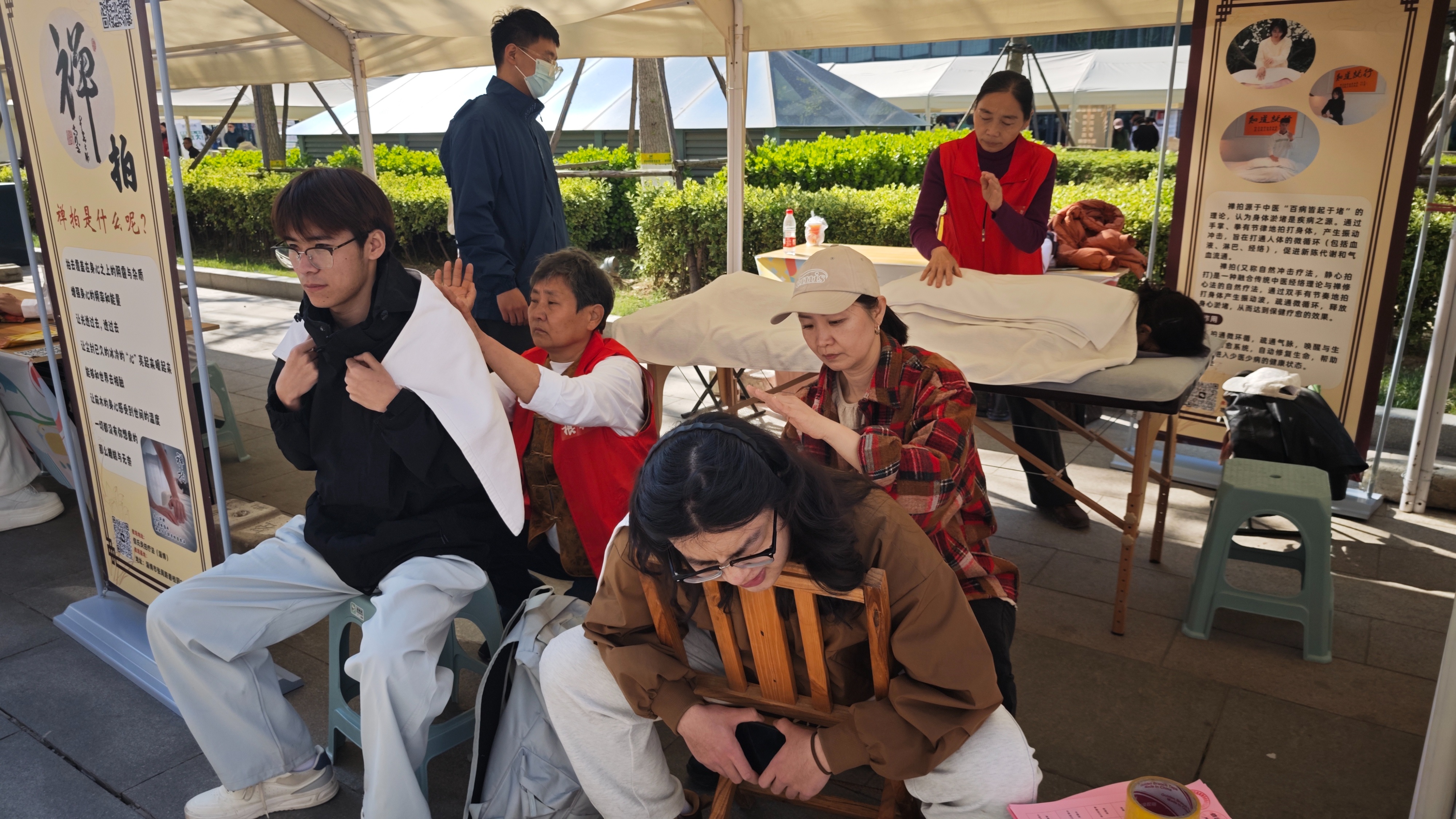 除了静态展示,市集更注重互动体验。禅拍、推拿、正骨等体验区前人头攒动,市民排队感受传统疗法的魅力;八段锦、太极拳展演教学区里,老少同练,一招一式间体悟“气血调和”的养生之道;中医药文创专区的养生香囊、主题手作等产品,将传统医药元素与现代设计结合,成为市民争相选购的“健康伴手礼”。