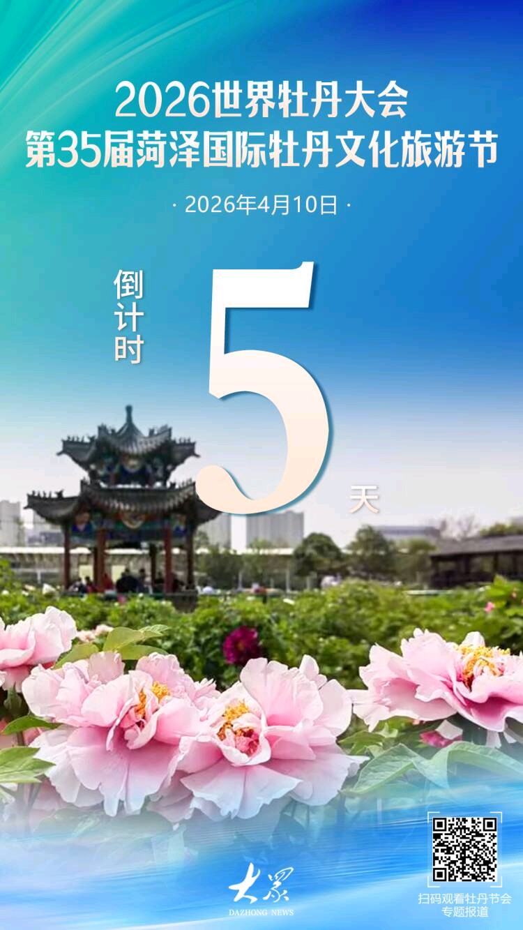 今天距离2026世界牡丹大会、第35届菏泽国际牡丹文化旅游节(即2026菏泽牡丹节会)开幕还有5天。