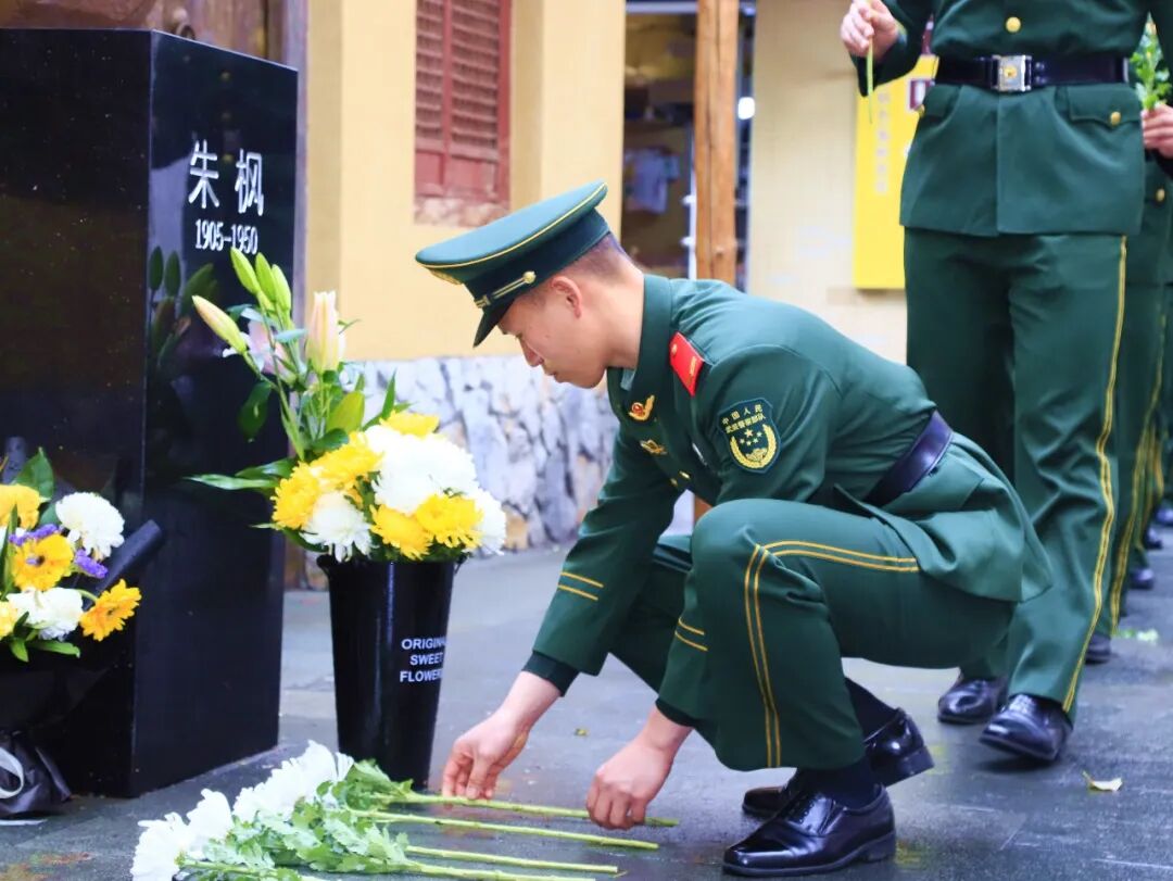 清明节,部队官兵前往朱枫烈士被捕处等地默哀、献花