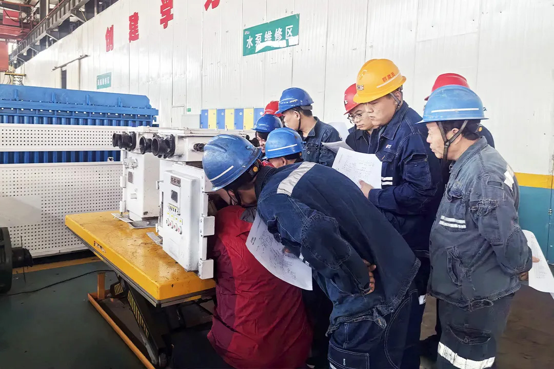 紧贴生产实际,突出实战实训。培训内容紧贴矿井生产实际,聚焦核心设备与关键技能。理论课程由矿内技术骨干与设备厂家工程师联合授课,系统讲解高低压开关、变频器、变压器、采煤机、掘锚一体机、单轨吊等核心设备原理及故障排查方法。以首期培训为例,上午围绕起动器,对照原厂图纸讲解控制回路、分合闸逻辑与保护原理;下午实操训练中,学员对照实物识图、模拟分合闸操作,老师手把手教学电缆绝缘检测、开关接线、防爆面处理、停送电规范及常见故障诊断。这种“上午学理论、下午练实操”的模式,让知识当天转化为技能,大幅提升了培训效果。