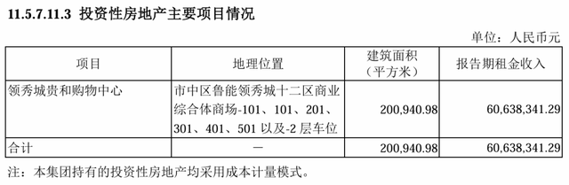 近日,中金中国绿发商业资产封闭式基础设施证券投资基金发布2025年年报,在投资性房地产主要项目情况中可以看到,其投资领秀城贵和购物中心项目,报告期租金收入6064万元。