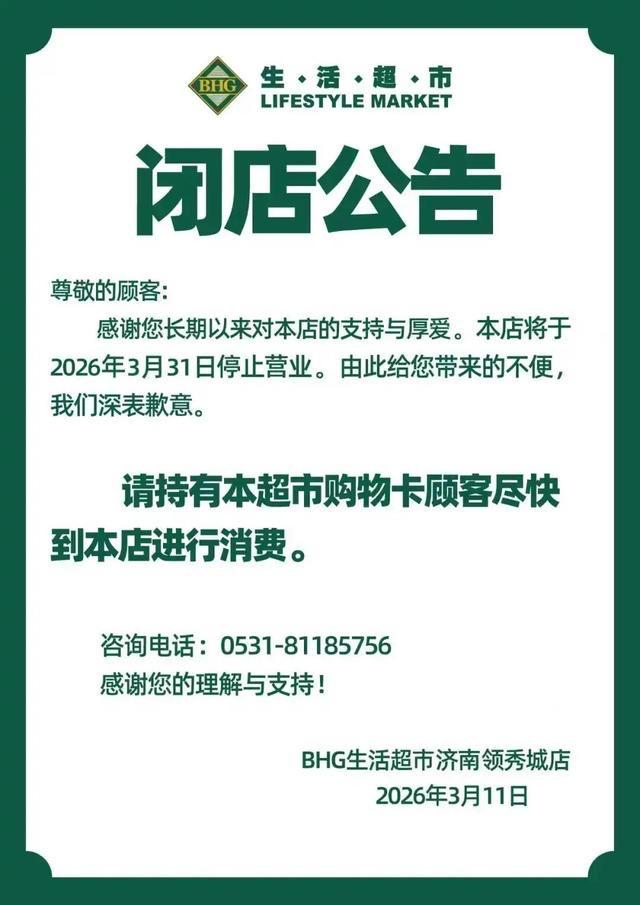 济南领秀城贵和BHG生活超市闭店,已收到两家超市签约意向书