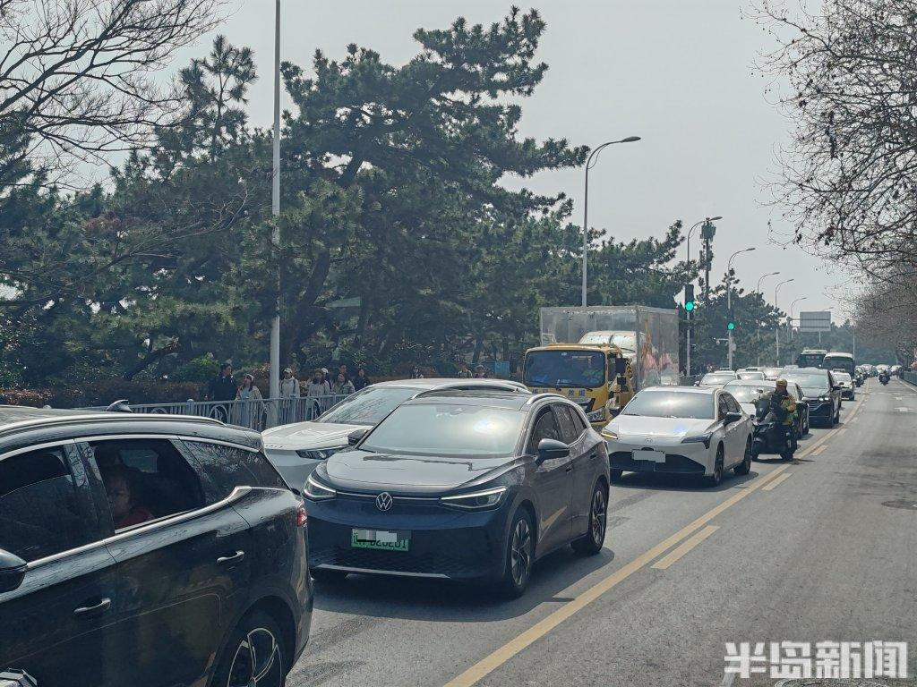 4月5日清明假期第二天,前海一线各景点人气爆棚!香港西路等前海沿线道路交通压力陡增,车辆拥堵缓行、通行不畅。在此提醒广大市民,外出游玩请尽量选择地铁、公交等公共交通工具出行,避免陷入拥堵。 (半岛全媒体记者王滨)