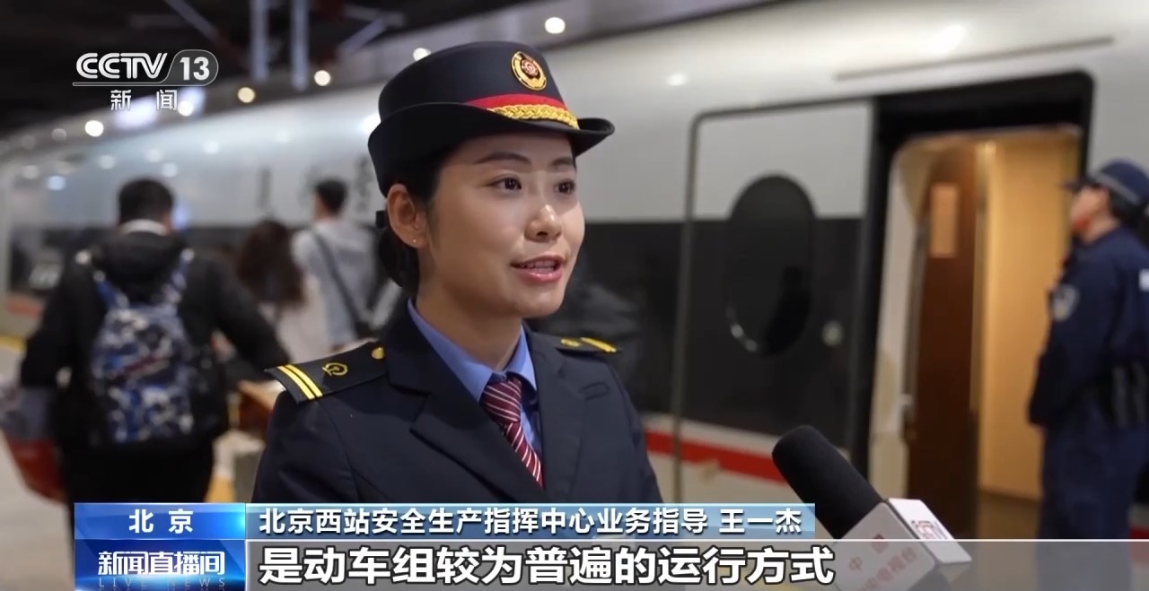 北京西站安全生产指挥中心业务指导 王一杰:列车折返换向运行,是动车组较为普遍的运行方式。清明期间,中短途客流激增,像北京西站、北京南站、天津站这些铁路枢纽车站,每天有数十甚至上百趟列车需要折返换向,这主要为了实现车底循环利用,提高动车组利用率。