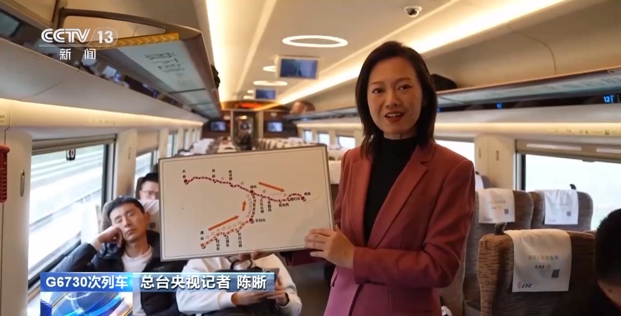 总台央视记者 陈晰:列车“折角换向”,是指列车不再沿原线路继续前行,而是换向折返、驶入另一条铁路线,这种情况多出现在铁路线路交会区域,相当于列车在铁路上完成一次“V”字形掉头转场。