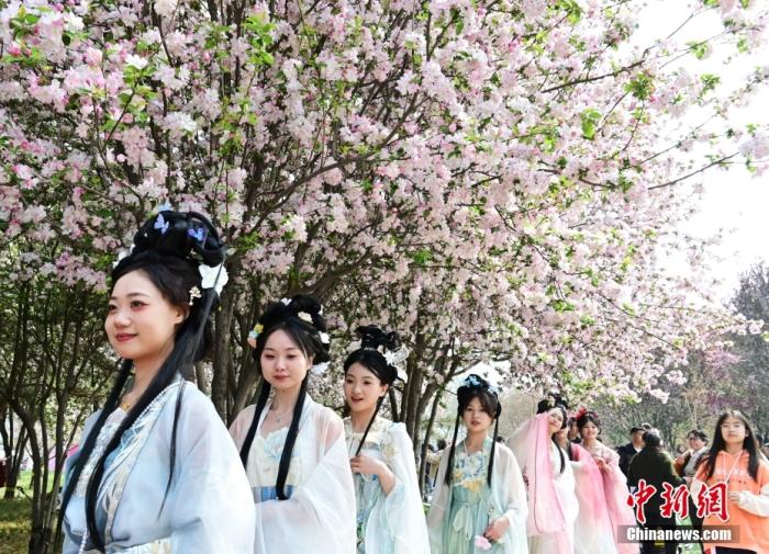 资料图:河北省石家庄市栾城区一公园,身着古装服饰的游客踏青游玩,享受美好春光。中新社记者 翟羽佳 摄基于此,她进一步解释道,在大多数情况下,清明节的日期往往落在农历三月,少数年份会出现在农历二月,民间因此有“二月清明”“三月清明”的说法。
