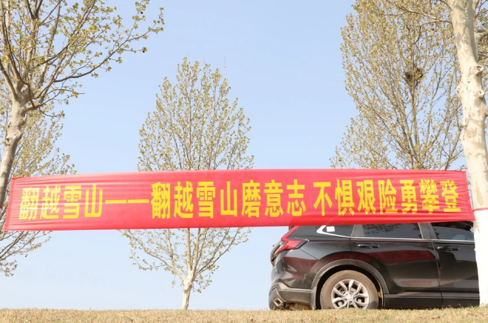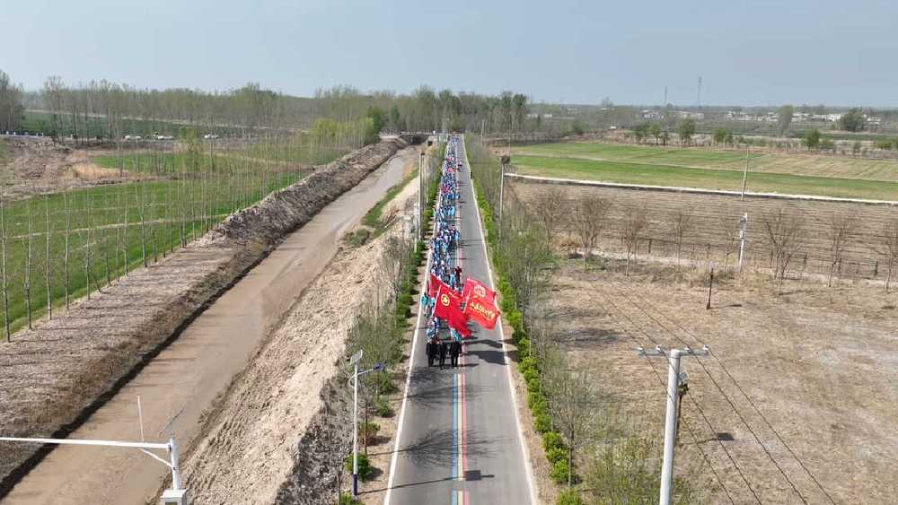 从起点到终点,队伍中每隔一段距离就有一条横幅,无声地提醒着这场行走的分量,从瑞金出发到吴起会师,九条横幅依次排开,像把“长征路”浓缩在了济阳的春天里。