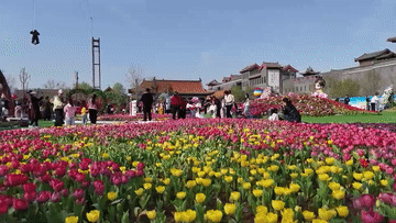 走进山东郓城水浒好汉城,30万株郁金香、芹叶牡丹交相辉映,万花筒、热气球、钢琴、风车、花仙子等网红打卡点错落点缀,游客们沉浸式感受春日的浪漫与惬意。
