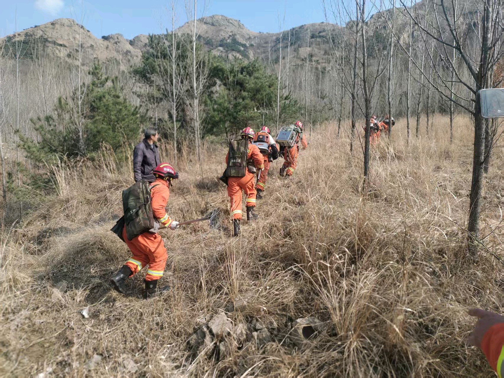 3月20日,诸城市与日照市开展联合演练,模拟五莲县户部乡东山突发山火并向外蔓延。接到增援命令后,诸城市森林防灭火专业队伍4车20余人迅速集结奔赴现场,即刻投入灭火作业。演练结束后,三地交流扑救经验,现场签订《森林防灭火联防联控协议书》,并就演练装备性能与操作使用展开深入交流。