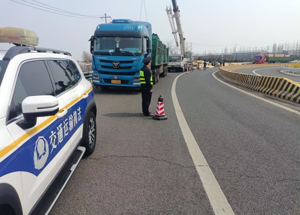 协同处置,执法有温度。 3月31日中午,官庄收费站潍坊入口匝道处,一辆满载方木条的大货车因车速过快侧翻,木材散落路面。执法队员迅速联动路管部门,高效完成安全警戒、车辆引导、路面清理和货物转载,快速恢复通行。针对驾驶员违法行为,坚持教育与引导相结合,开展普法宣传并依法作出首违不罚处理,既守安全底线,又彰显执法温度。