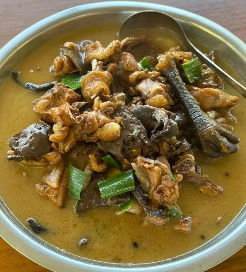 选用蒙山散养草公鸡,搭配三十余种香料,木柴慢炖,色泽红亮、汁宽味浓,是蒙阴响当当的招牌名吃。