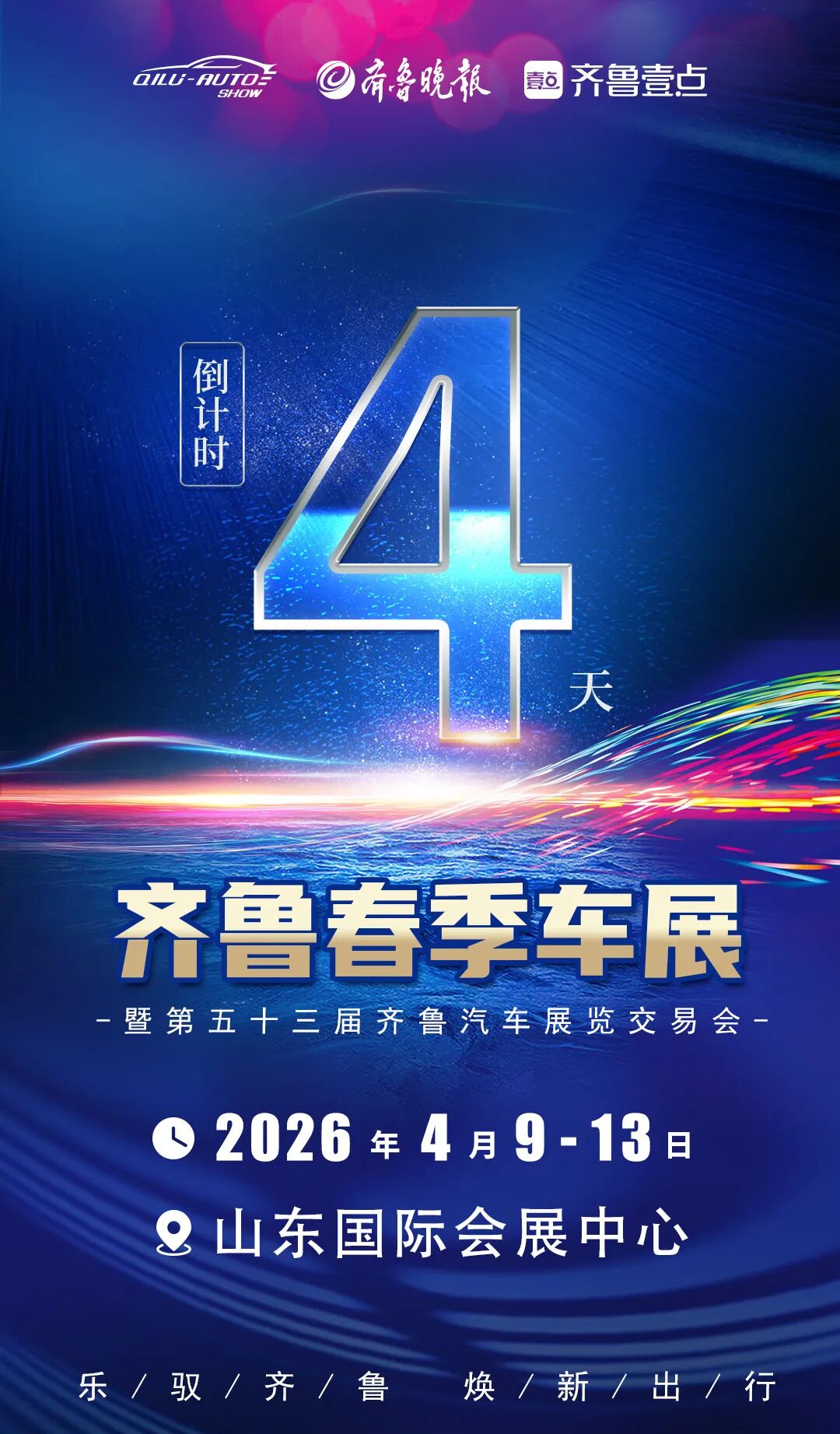 4 月 9 日 —13 日,以 “乐驭齐鲁・焕新出行”为主题的 2026 齐鲁春季车展(第五十三届齐鲁汽车展览交易会)将在山东国际会展中心盛大启幕。展会汇聚国内外主流汽车品牌,集中展示最新车型、前沿技术与重磅购车福利,为广大消费者打造一站式赏车、购车、玩车的沉浸式体验平台。