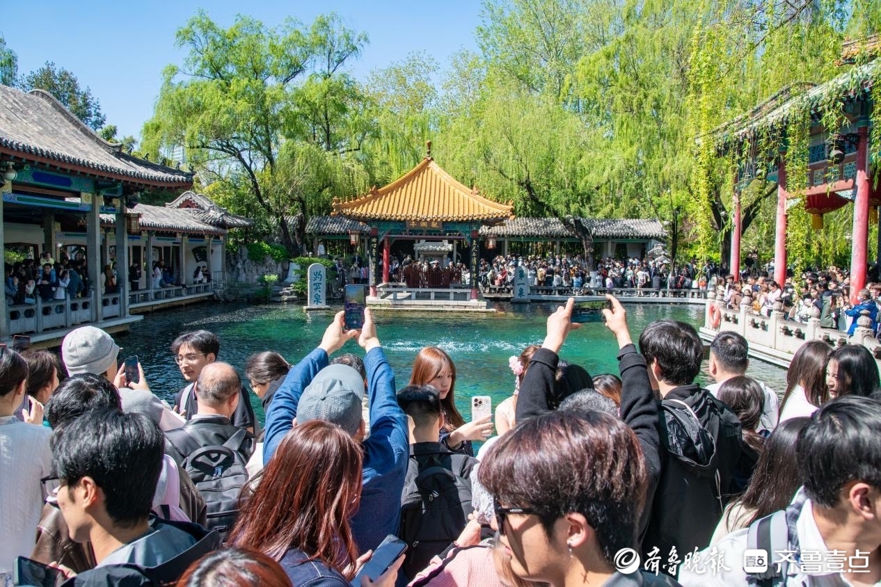 这个清明假期,天下第一泉风景区以独一无二的千年泉韵、得天独厚的自然风光、底蕴深厚的人文气息、精彩纷呈的演艺活动,成为市民游客踏青赏花的热门打卡地。在这里,人们赏春花、游泉水,体验泉畔春韵,触摸传统温度,感受济南这座千年古城的澎湃活力。