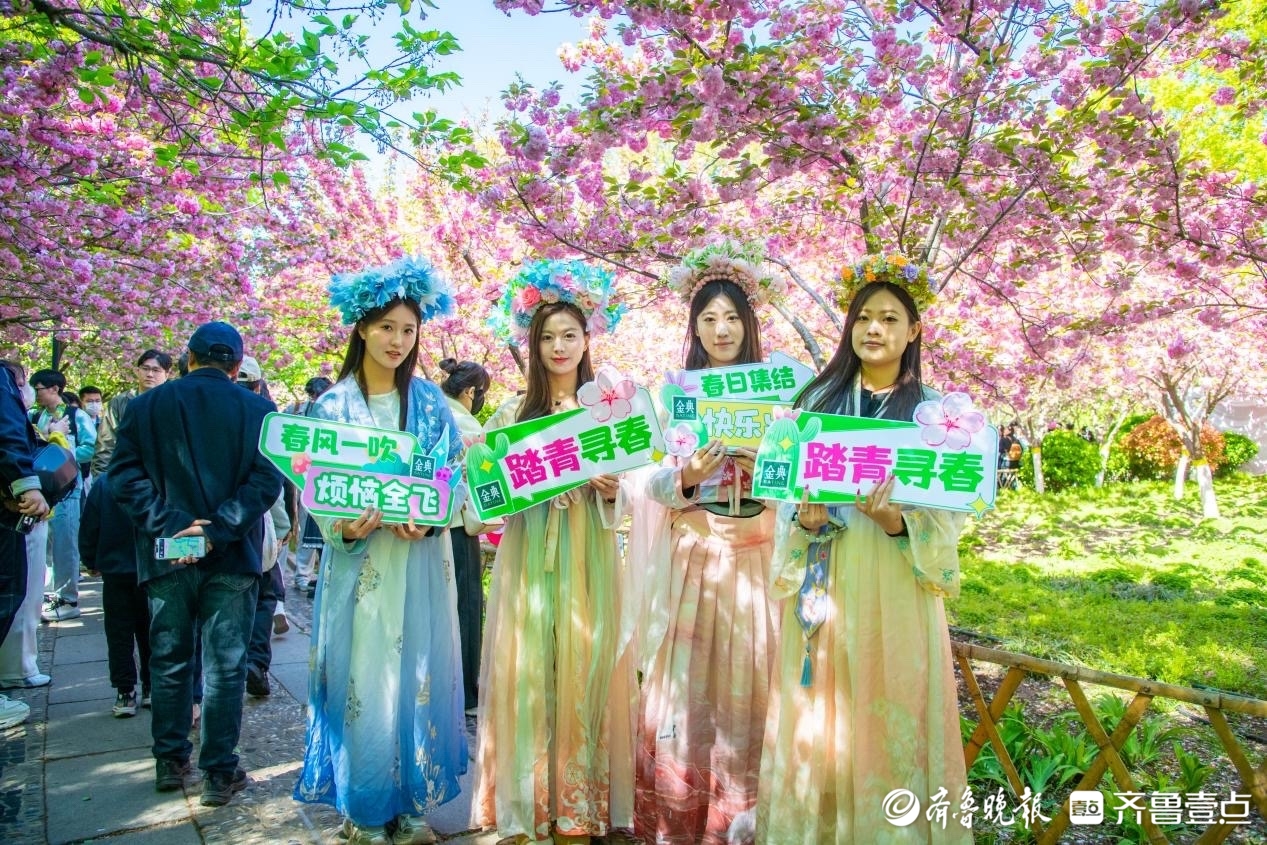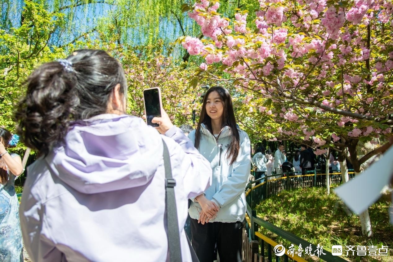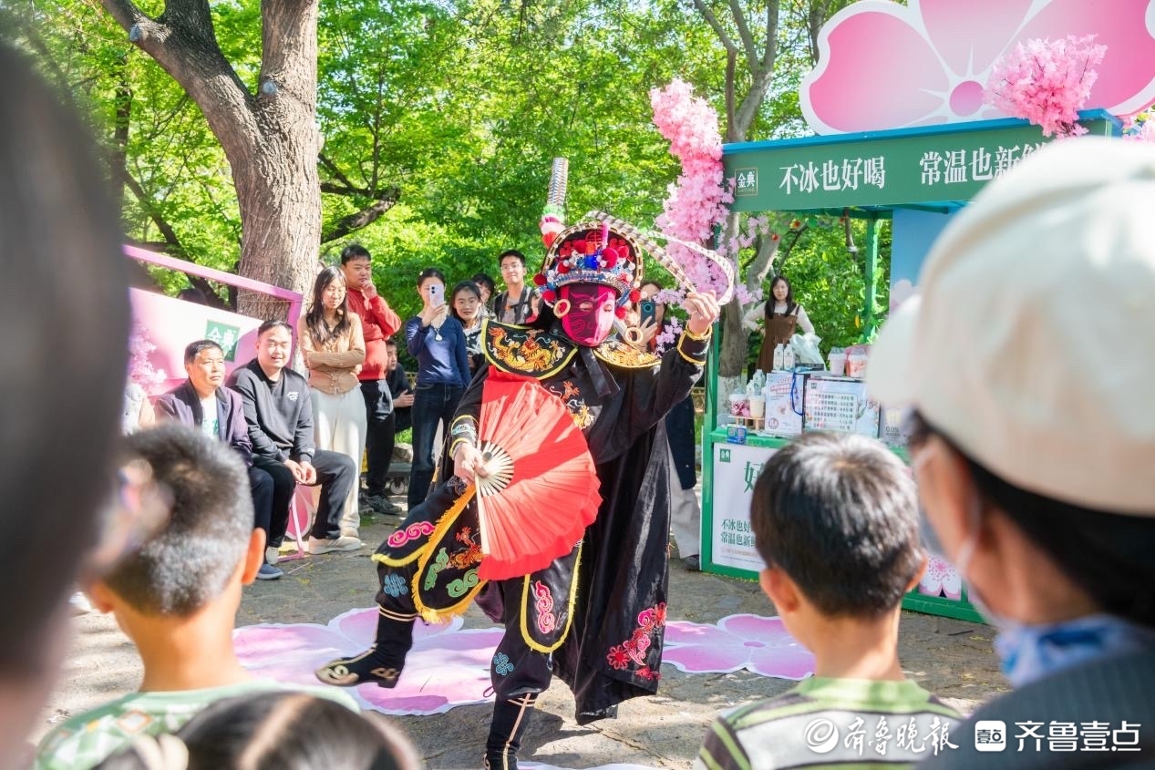 作为春日打卡胜地,五龙潭公园一派热闹景象。第二十三届樱花节正在火热进行中,樱花海棠缀满枝头,与清泉、古建相映成趣,吸引游客驻足拍照。樱花节融合樱花主题美食、古妆造、非遗手作、泉水文创等特色内容,搭配汉服巡游、民俗演艺、乐队演出,让游客在赏花之余,沉浸式感受国风文化的多元魅力。
