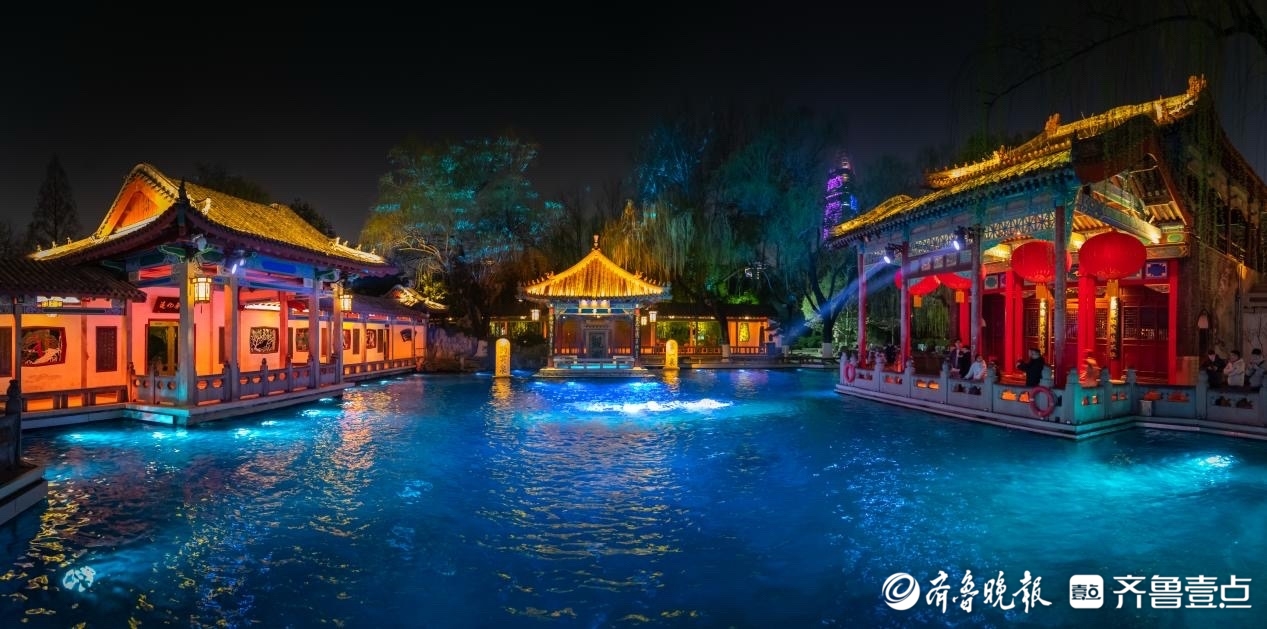 白日游泉赏花,夜晚赴宴入画。假期期间,天下第一泉风景区两大王牌演艺齐发力。趵突泉夜游《趵突夜画》每晚20点如约守候,以光为笔、以音为墨,深挖“二安”文化精髓,融合光影秀与NPC互动,让千年泉脉在夜色中焕发新生;大明湖沉浸式演艺《金风玉露宜相逢》火爆上演,以“全程入戏”的互动模式,为游客带来如梦如幻的视觉盛宴。精彩纷呈的互动演艺,为踏入这座城市的四海宾客带来更沉浸、更超值的演艺体验,解锁泉城诗意风华。