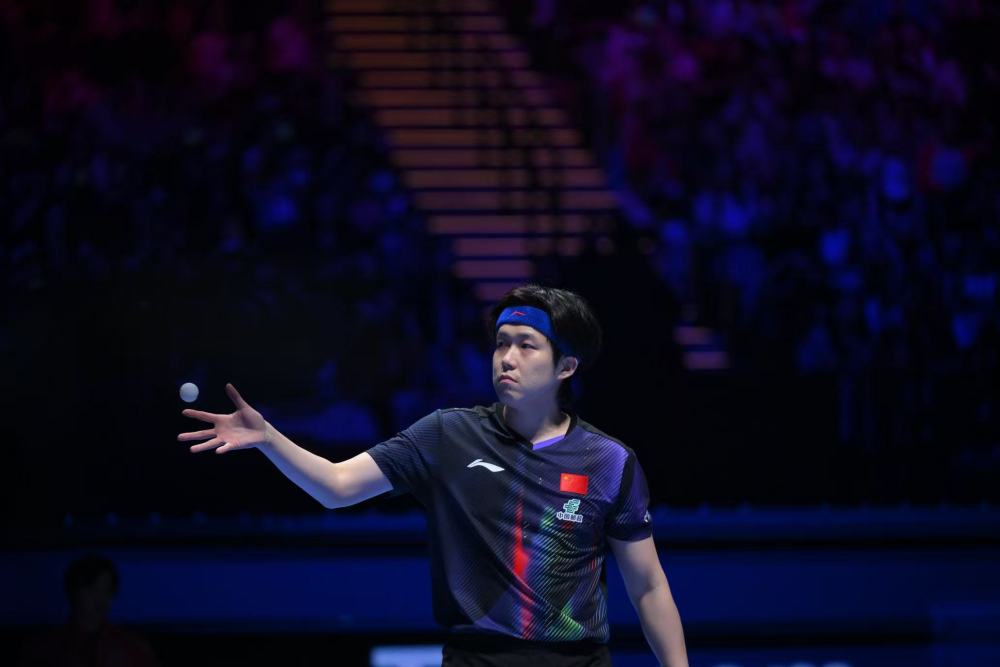 新华社澳门4月5日电在5日进行的2026国际乒联单打世界杯男单决赛中,世界排名第一的中国名将王楚钦以4:3战胜日本选手松岛辉空,首次夺得该项赛事冠军。4月5日,王楚钦在比赛中。新华社发(张金加摄)