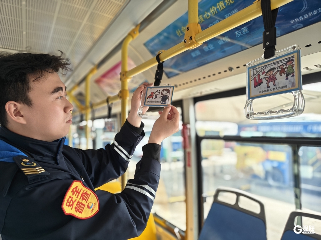 近日,青岛城运控股公交集团崂山巴士第六分公司在225路公交车上精心布置了一批特别的“手拉宝”。这些悬挂在车厢扶手上的提示牌,一改往日严肃的文字标语,取而代之的是一幅幅色彩鲜艳、童趣盎然的手绘漫画,内容涵盖乘车安全、文明礼让等温馨提示,让原本普通的车厢瞬间变身流动的“文明风景线”。