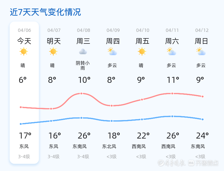 滨州今日天气晴朗 明日持续晴好AI写稿 2026-04-06 07:17:33温馨提示未来三天,滨州地区天气变化较大,尤其是周三的小雨天气,可能会对交通造成一定影响。市民出行时请注意天气预报,及时调整衣物,避免感冒。雨天路滑,驾车请减速慢行,确保行车安全。责任编辑:AI小壹