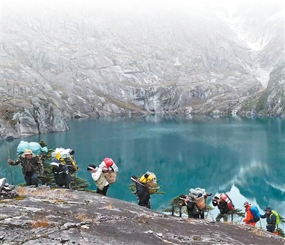 前段时间,种子采集队来到高黎贡山北段。那里的核心区人迹罕至,科考难度极大。为确保顺利完成植物种质资源采集工作,采集队分为两组,一组从海拔1600米的丙中洛四季桶村出发,徒步3天,抵达海拔约4000米的高黎贡山主峰嘎哇嘎普峰初干错冰蚀湖,开展野外采集工作。另一组10人,则沿着曾经的茶马驿道徒步5天,往返45公里开展考察和采集工作。