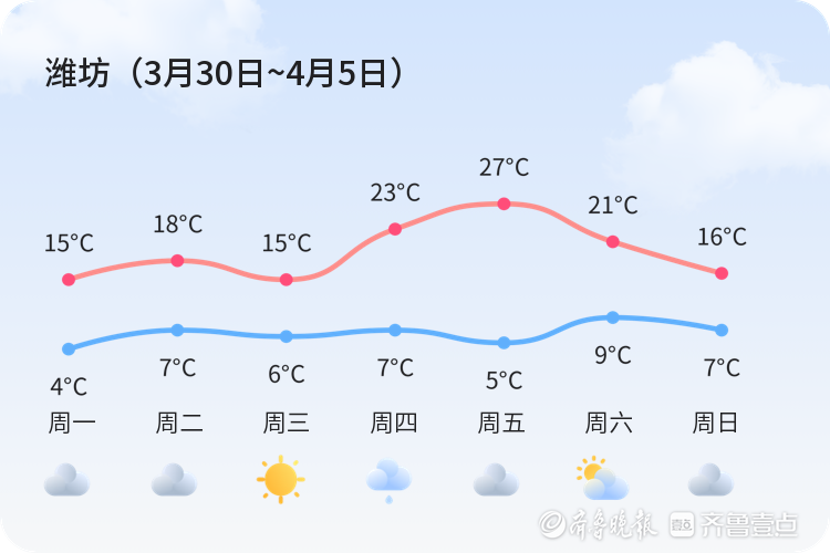 上周总体以晴为主基调,可能还会有雨、阴等天气。