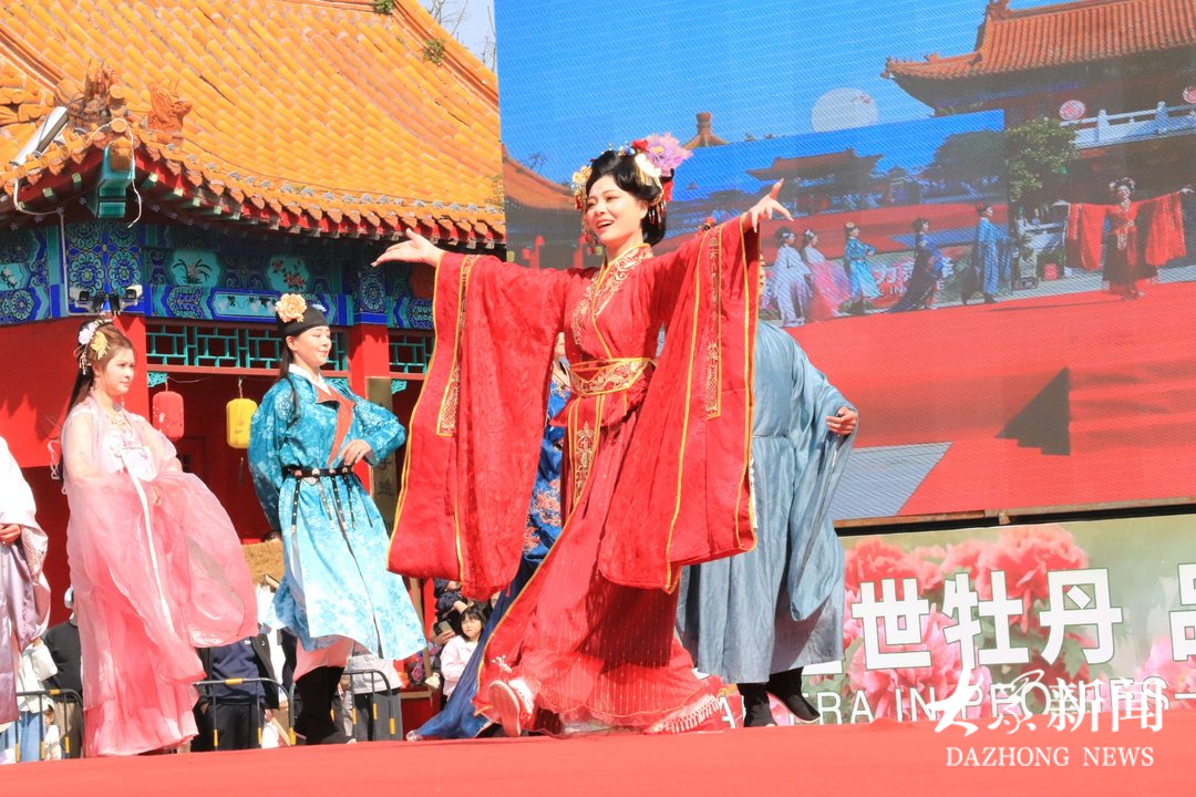 《执羽》迎宾重现周代礼乐,六佾舞敬天法祖表达对自然的敬畏,十二花神衣袂翩跹与花王牡丹仙子雍容亮相,学者、老花农、青年科研代表共同诵读《敬牡丹文》,以庄重仪典传递对土地的深情。