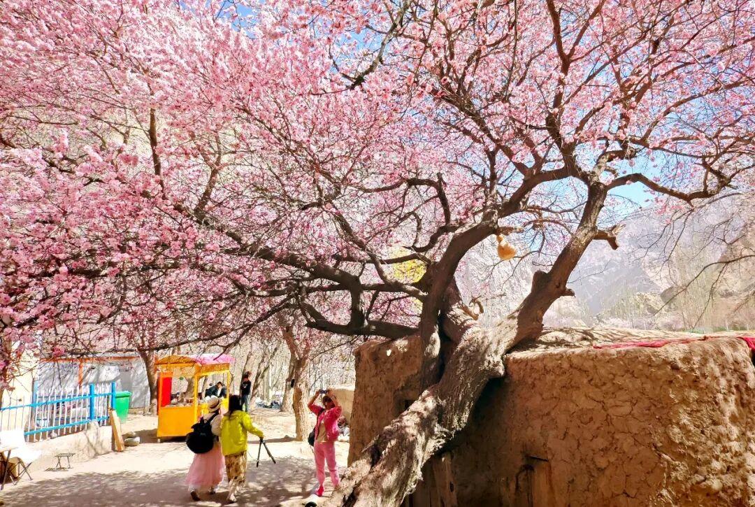 塔什库尔干塔吉克自治县杏花盛花期,游人如织。方一朝 摄