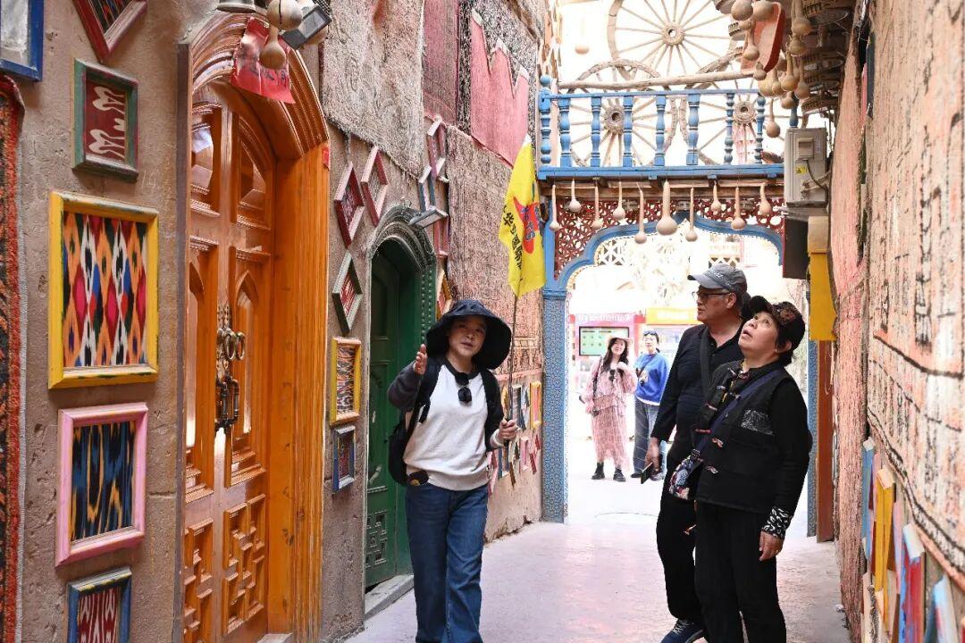 店外,游客们在彩虹巷、布袋巷等网红打卡点前排队等候拍照,笑容与春风一同绽放在古城的每个角落。“喀什古城保留了最原汁原味的风貌,看不到千篇一律的商业街,收获的都是独特体验。”来自成都的游客林兴惠说道。