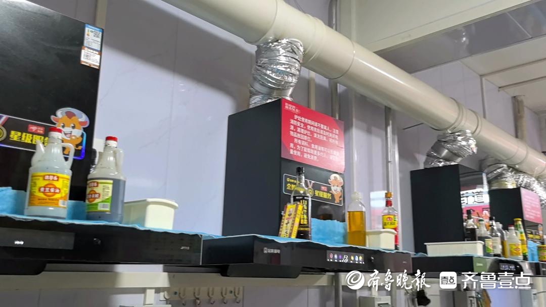 爱心厨房的调料台上,油盐酱醋被码放得整整齐齐。