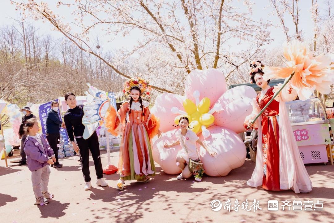 不止杜鹃争艳,五莲各处繁花各美其美,特色景区各展所长打造专属春日体验。白鹭湾小镇内,上万株、36个品种的樱花迎来盛花期,粉白花海铺展山间,景区将樱花观赏与非遗、文创、餐饮深度融合,非遗互动剧《走花神》、民谣现场精彩上演,风味市集热闹开市,樱花饮品、樱花文创、特色小吃一应俱全,实现“赏、游、购、吃”一站式消费体验。“把樱花观赏与各类消费场景深度绑定,让游客在赏樱的同时,有更多体验、更多消费选择。”白鹭湾景区负责人刘茗轩介绍。大青山风景区里,二月兰紫韵悠悠,连翘金黄耀眼,非遗舞狮腾挪灵动,铿锵锣鼓敲出浓浓民俗味,趣味小丑互动则为亲子家庭带来满满欢乐,成为本地游客近郊踏青的热门选择,日照游客张慧带着孩子前来登山赏花,“既能亲近自然、强健体魄,又能感受非遗文化,孩子玩得开心,大人也觉得舒心。”