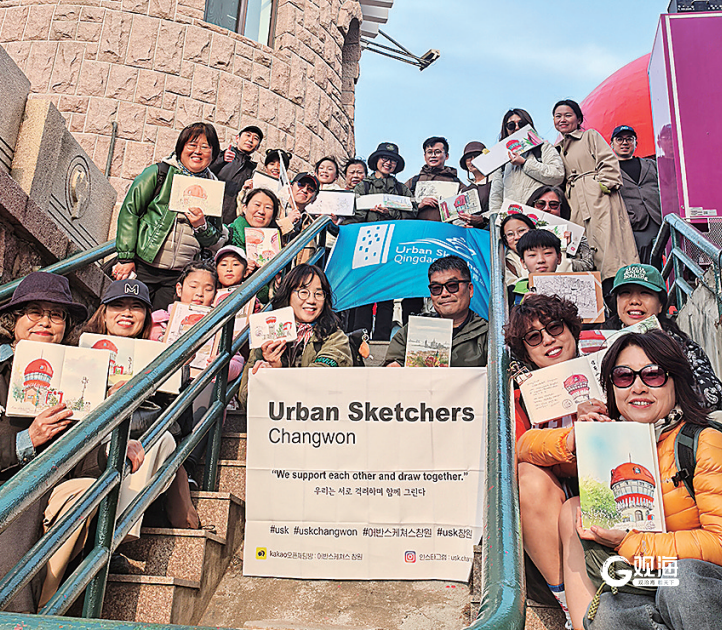 这一天,速写青岛的周末写生活动迎来了8位特殊的客人——从韩国昌原专程赶来的画友。不同语言、不同画风,却在同一片天地下,安静地勾勒着各自眼中的青岛。