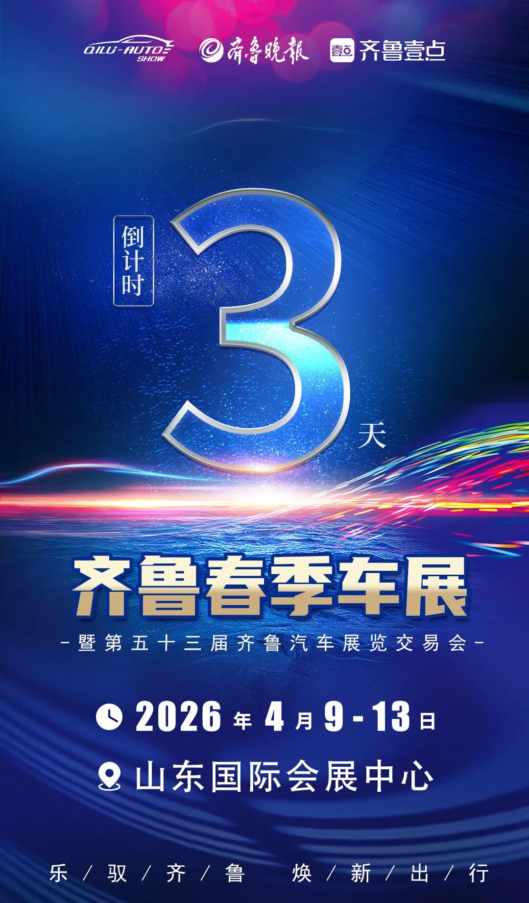 4月9日—13日,以“乐驭齐鲁・焕新出行”为主题的2026齐鲁春季车展(第五十三届齐鲁汽车展览交易会)将在山东国际会展中心盛大启幕。