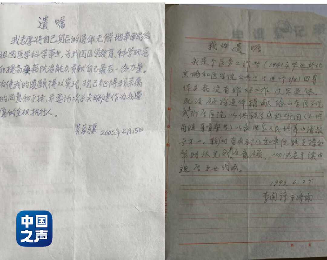 两位老人生前留下遗嘱,明确希望将遗体捐献用于医学事业