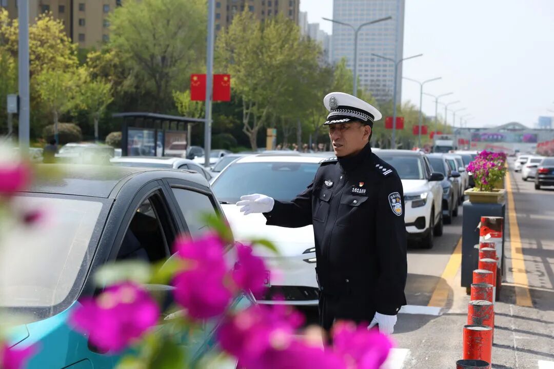 人民路与长城路交叉口执勤民警采取远端分流、近端管控、绿波带调控等综合措施,引导车辆有序通行。园区周边多处停车场全部开放,有效缓解了停车难题。旅游路等易堵路段实行由西向东单向通行,现场设置清晰引导标志,车辆通行效率明显提升。