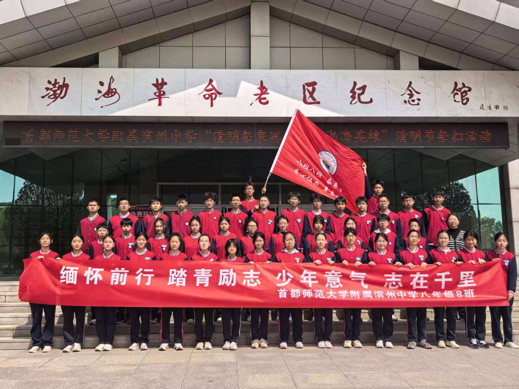一次远足,一次祭扫,一次成长。渤海革命老区的红色血脉,通过脚步与汗水融入八年级8班每一位同学的心田。未来,他们或许会忘记这一天的疲惫,但绝不会忘记纪念碑前那刻入心底的誓言——赓续红色血脉,锤炼意志品格,传承时代使命。