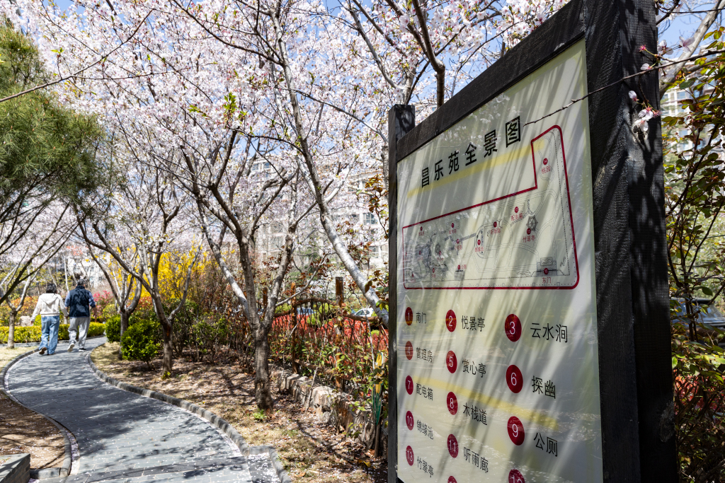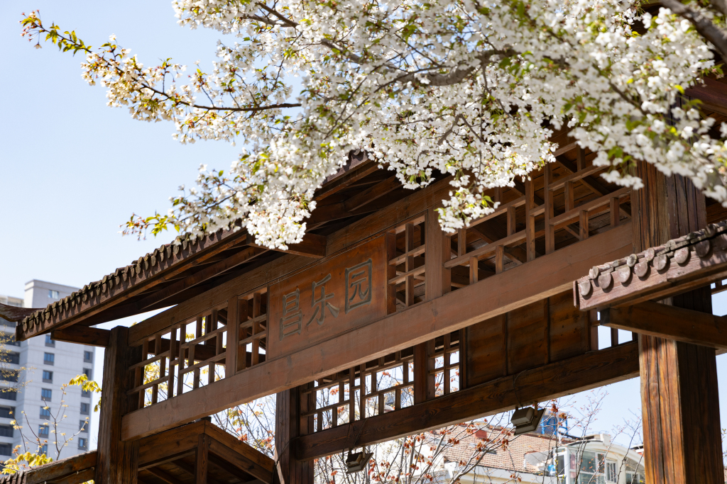 昌乐园是一座口袋公园,占地面积4300平方米。经过前些年的改造,这里建成了以中式园林风格为特色,拥有主题花园、长廊游亭、竹林小道等景观的特色园区,让居住在周边的市民有了休闲健身的场所。眼下春光明媚,昌乐园里一片生机盎然,呈现出口街角公园的独特之美。