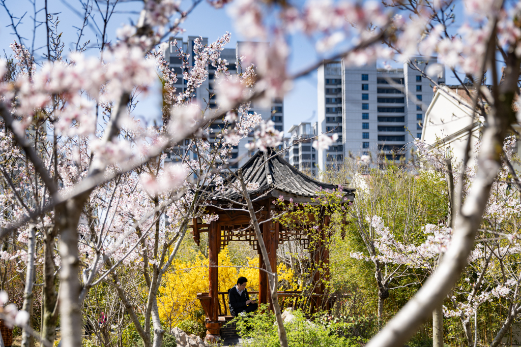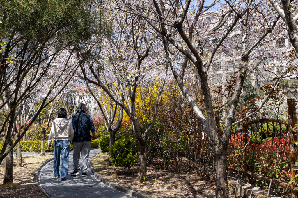 4月6日,位于青岛昌邑路附近的昌乐园里,一些市民在这里休闲放松,享受家门口的春光。