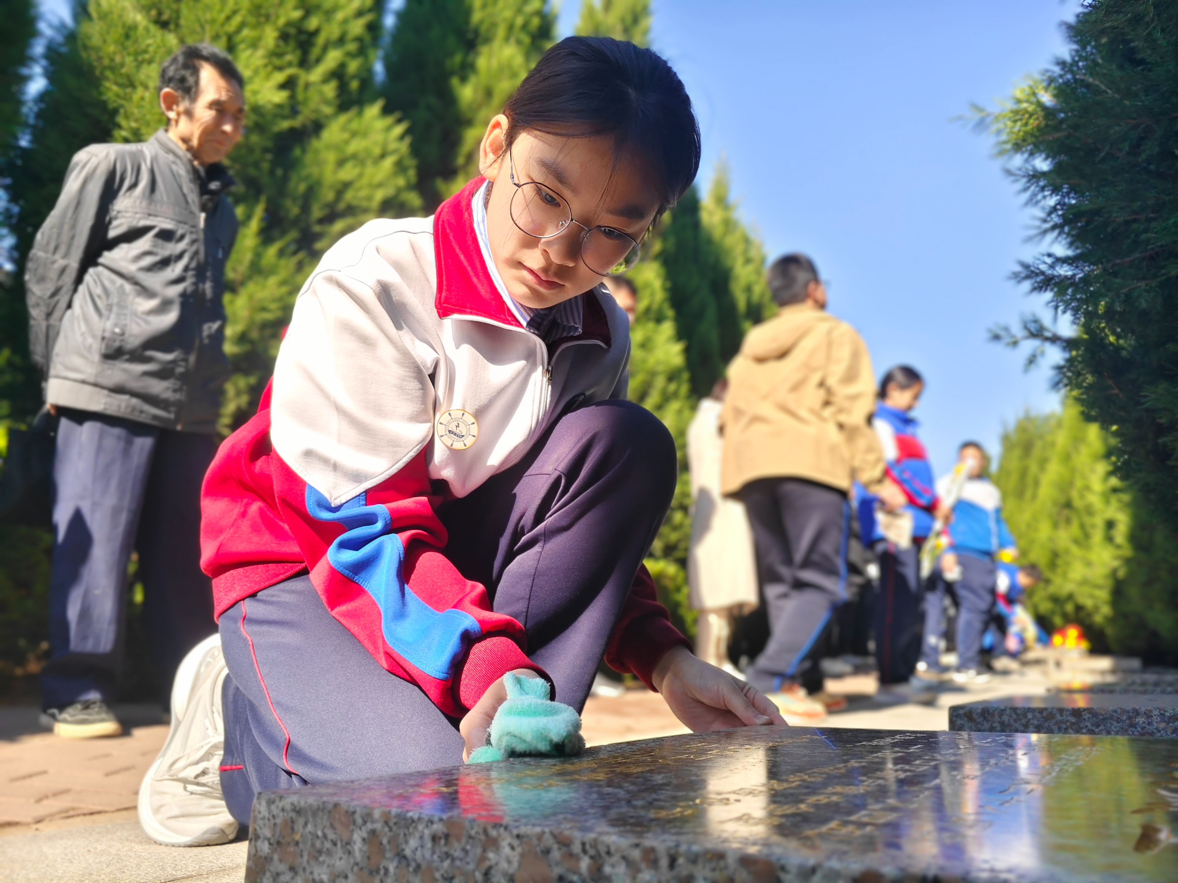 河口区志愿者协会组织百余名小志愿者开展清明祭扫活动