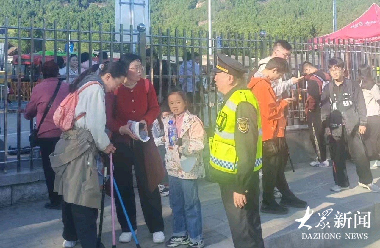 便民服务暖人心 细微之处见真情。“同志,我和孩子走散了,能帮帮我吗?”16时05分许,一名母亲焦急地向正在天外村公交站牌附近执勤的支队执法八队副队长杨永健求助。经询问得知,这一家三口途经天外村公交站牌出口时,因景区客流量较大,孩子贪玩乱跑,不慎与母亲走失。了解情况后,杨永健一边耐心安抚这位母亲的焦急情绪,一边细致询问两名走失孩子的体貌特征、衣着打扮等关键信息。随后,他立即联合现场执勤的执法人员同步开展搜寻工作。