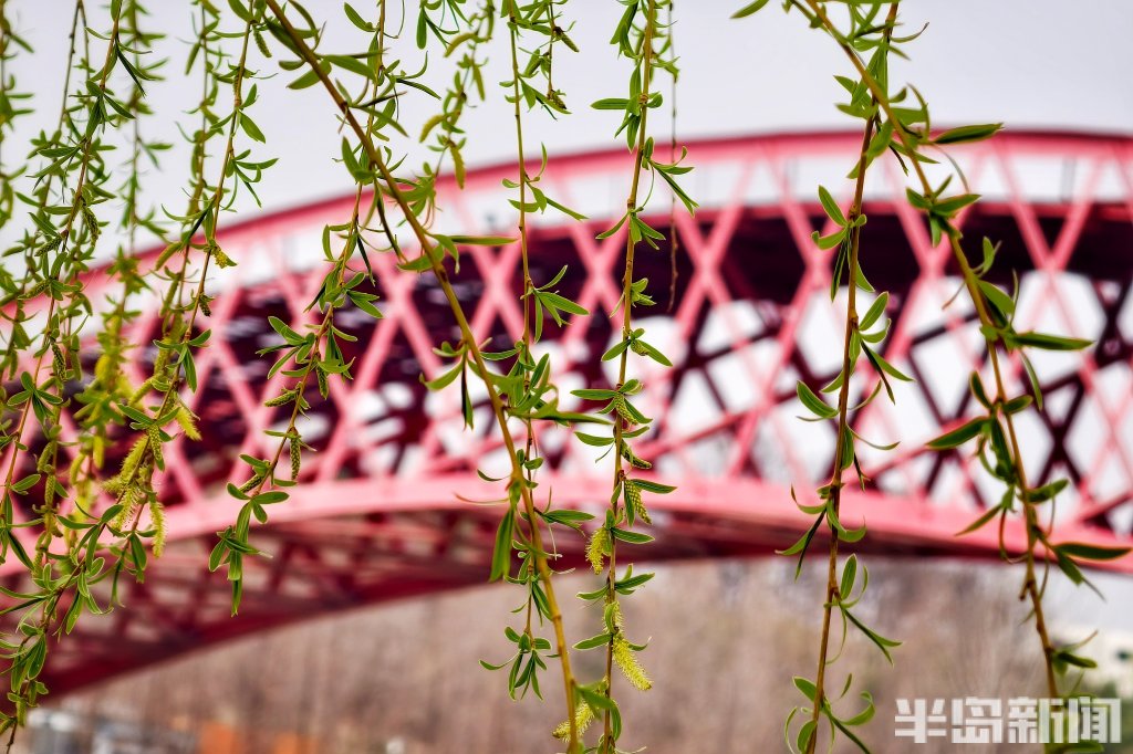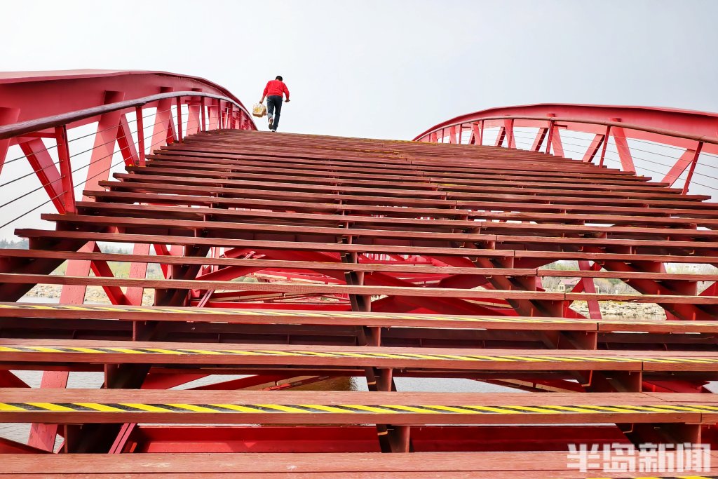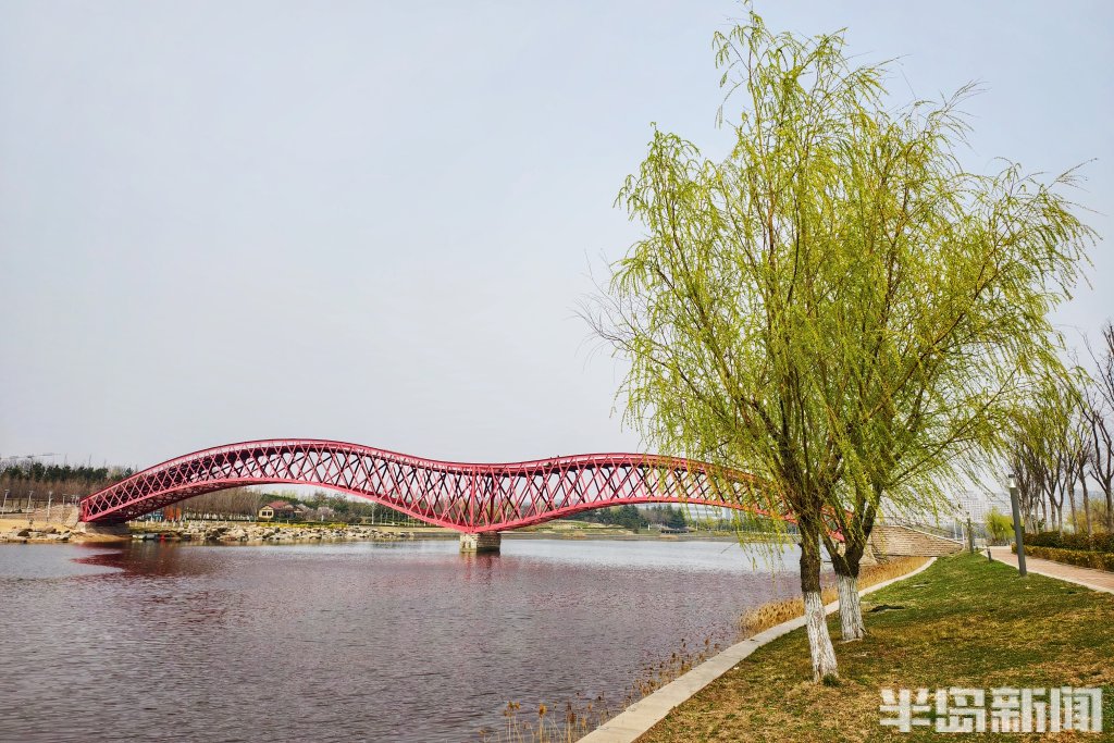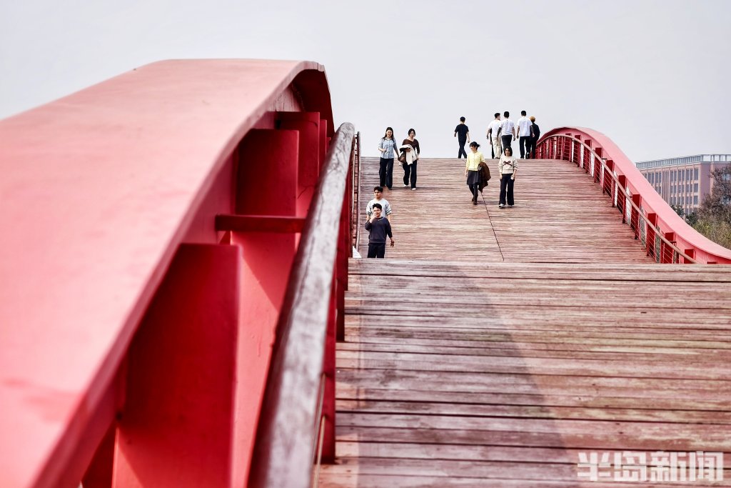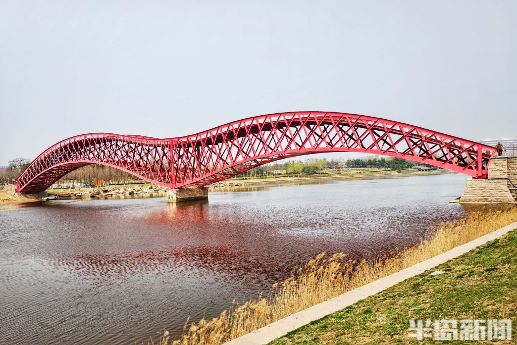 在青岛市胶州如意湖公园,一座造型独特的红色钢结构桥正悄然走红。它是藏在湖畔一隅的小众打卡地——起伏流畅的桥体线条、鲜艳醒目的红色钢架,与蓝天碧水相映成趣,随手一拍都是大片,近日来引得不少市民打卡赏春。