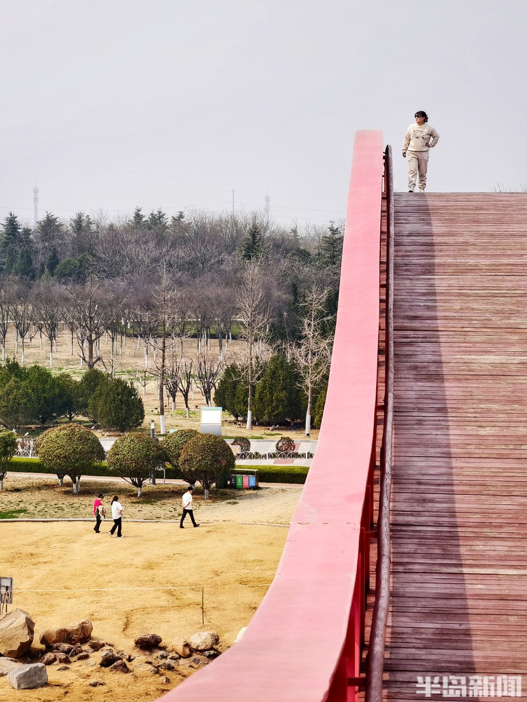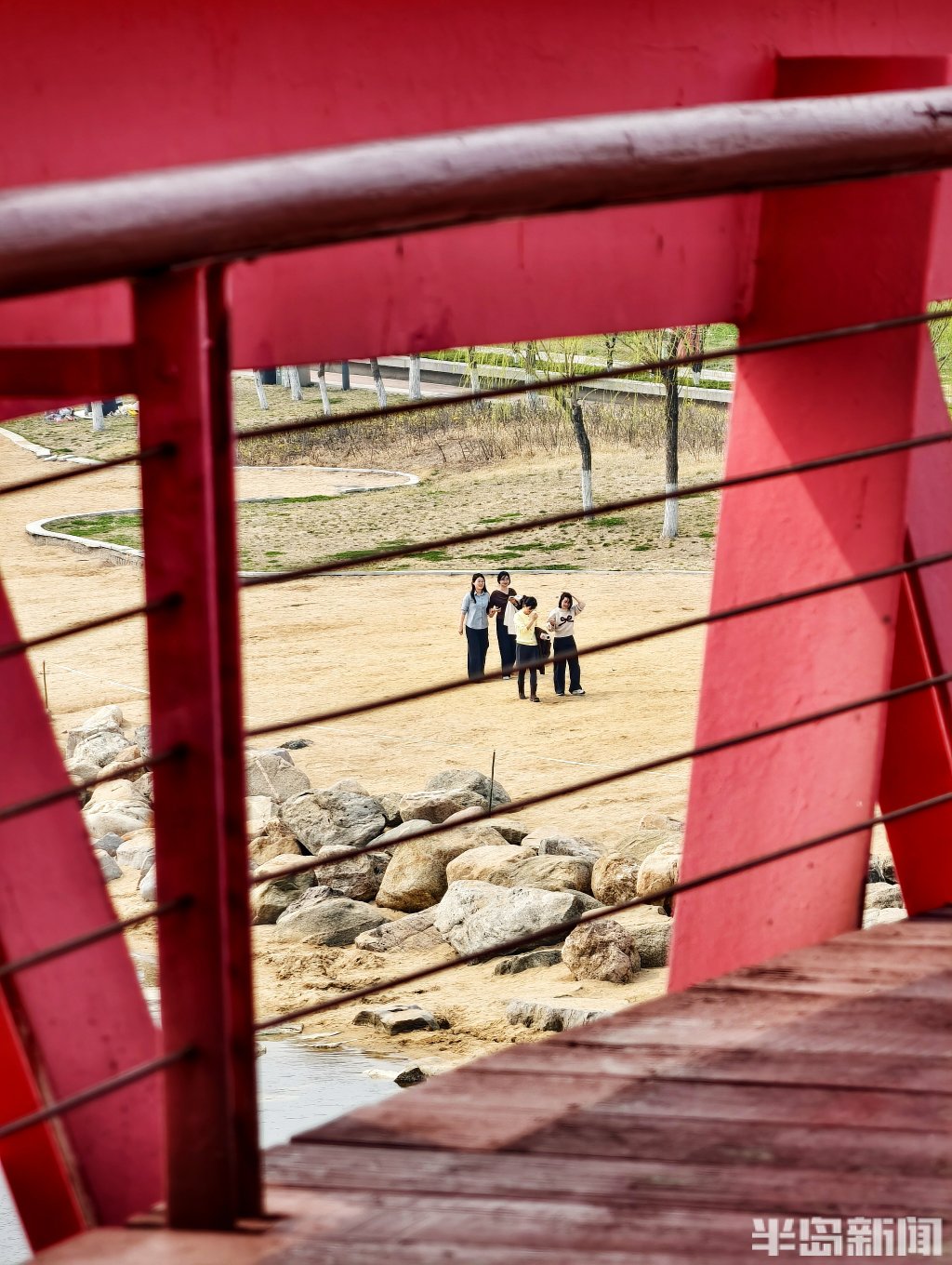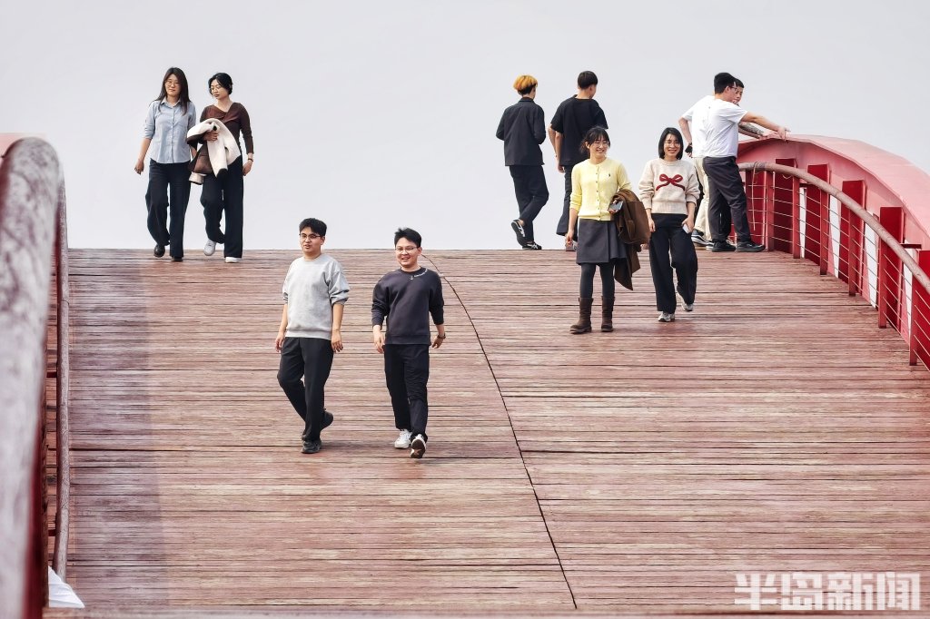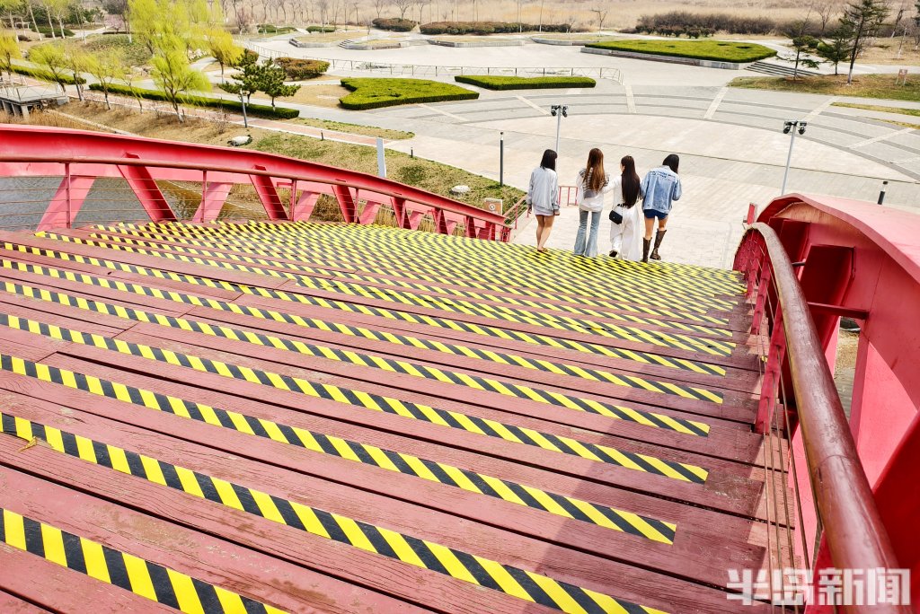 在青岛市胶州如意湖公园,一座造型独特的红色钢结构桥正悄然走红。它是藏在湖畔一隅的小众打卡地——起伏流畅的桥体线条、鲜艳醒目的红色钢架,与蓝天碧水相映成趣,随手一拍都是大片,近日来引得不少市民打卡赏春。