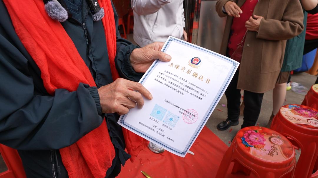 李贵喜的儿子李海鹏站在一旁,看着父亲的笑容,激动不已:“这是我父亲这辈子最重要的日子。看着他终于圆梦,我也特别激动。”他说,他们家族的基因很好,父亲十几年如一日、24小时照顾卧病在床的母亲,这份孝心大概就是福报。如今,这份福报以另一种方式回到了父亲身上——让他有生之年,找回了根。