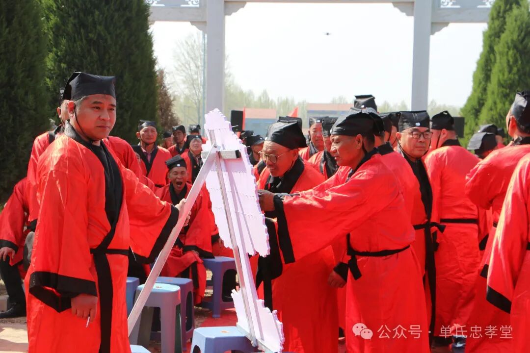 4. 宗亲叩拜: 各地宗亲代表共同行三跪九叩大礼。白发长者神情庄重,青年后辈虔诚效仿,展现了单氏家族尊祖敬宗的优良家风。