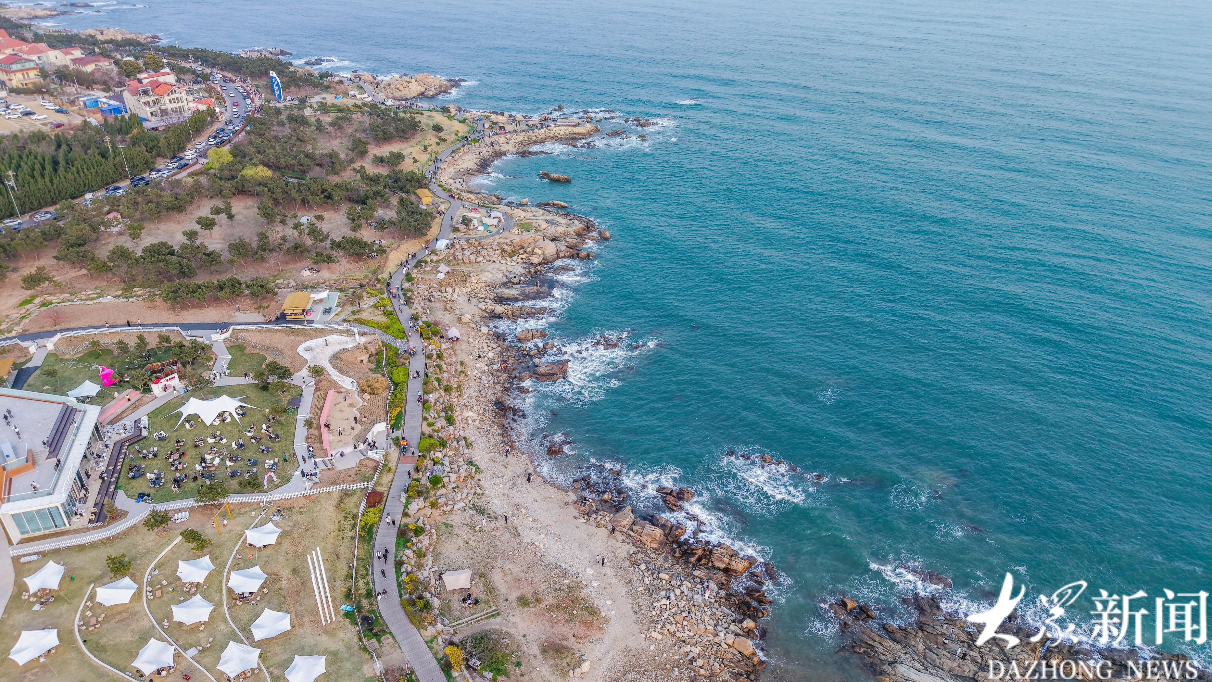 4月6日,人们来到位于青岛西海岸新区薛家岛街道的鱼鸣嘴景区,在帐篷下、海风中,享受假期的最后时光。当日是清明假期最后一天,青岛西海岸新区阳光明媚,春意盎然。鱼鸣嘴景区,凭借其独特的三面环海风光和成熟的露营配套,迎来了假期客流小高峰。景区内帐篷错落有致,与蓝天、碧海构成了一幅生动的春日画卷。吸引了不少游客来到这里,在大自然的怀抱中放松身心。(大众新闻记者王培珂)