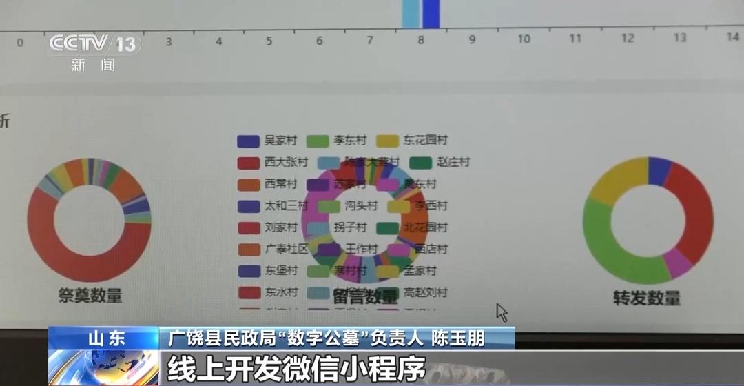 广饶县民政局“数字公墓”负责人 陈玉朋:线上开发微信小程序,家属可以通过定位找到公墓的位置在线追思祭扫,线下设立纪念碑,为群众提供了一个固定的文明祭扫的场地。“深埋入葬+数字公墓”的安葬模式已节约土地200余亩。